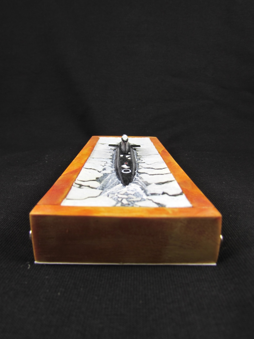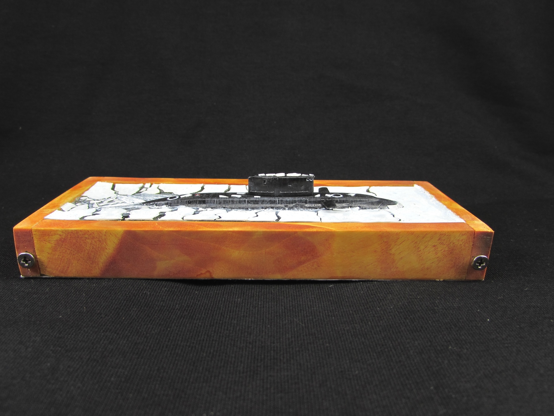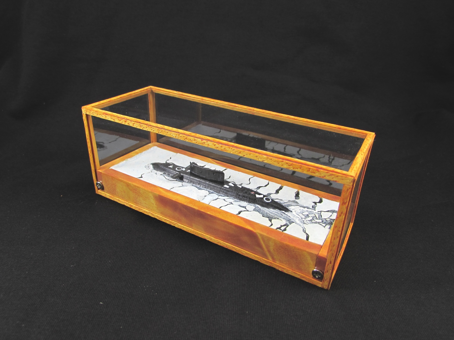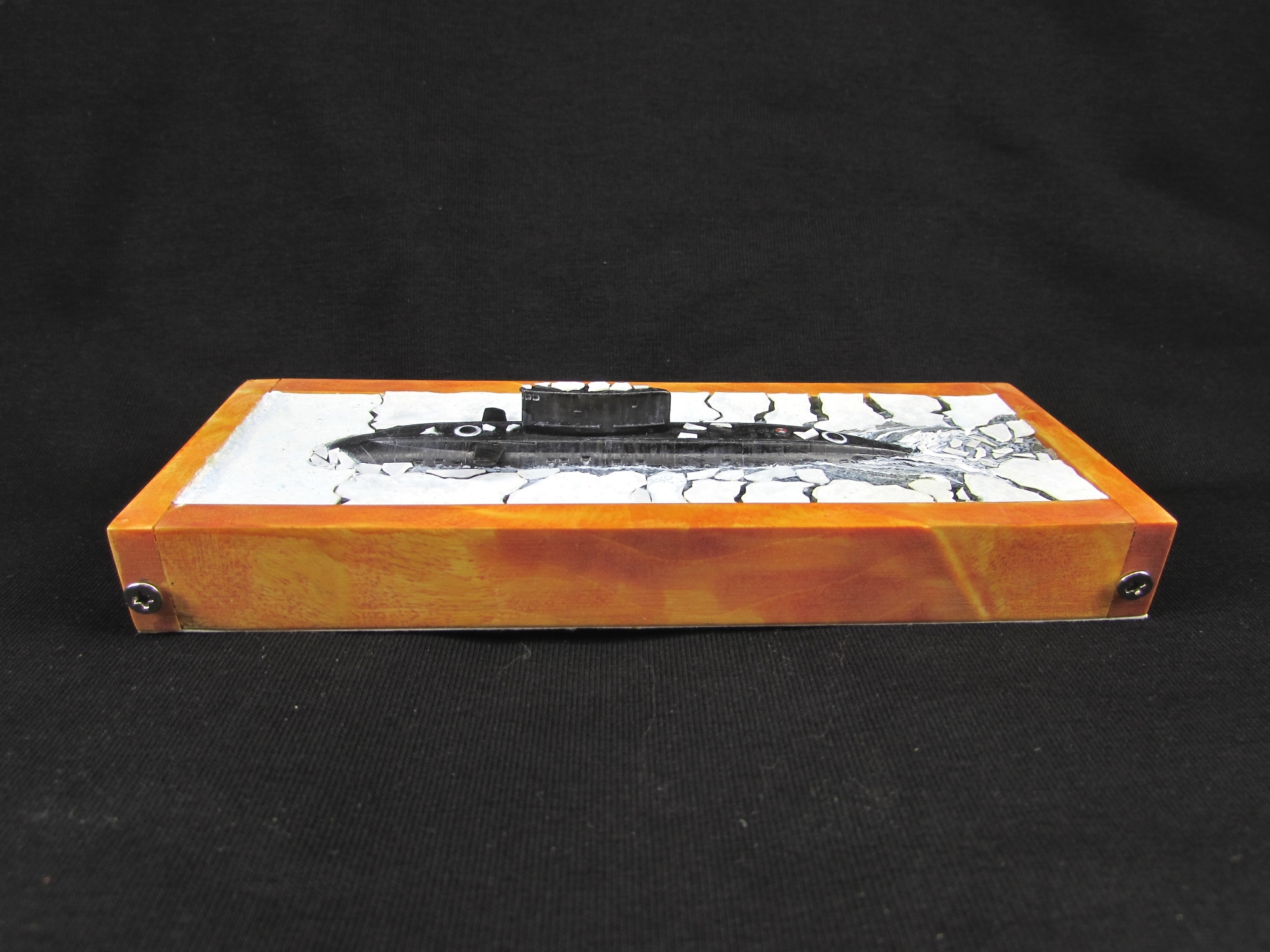 диорама понравилась, мерзлота не "вечная", вот и выглядит иначе - не обязательно же всплыла на полюсе? а вот футляр как-то не очень, ни цветом (белый, или темный смотрелись бы лучше), ни шурупами и таблички не хватает