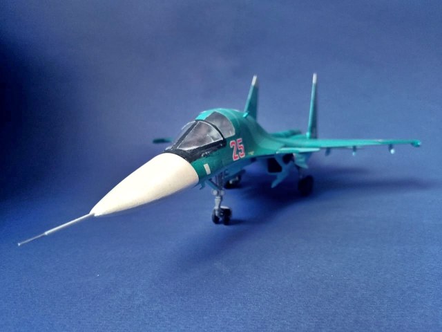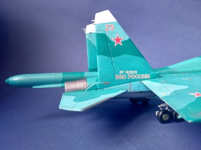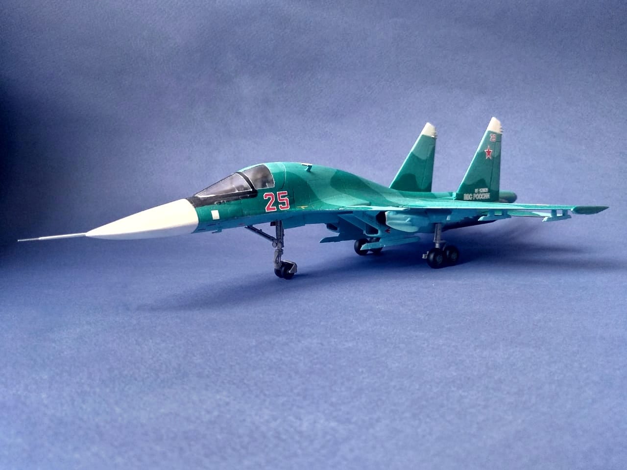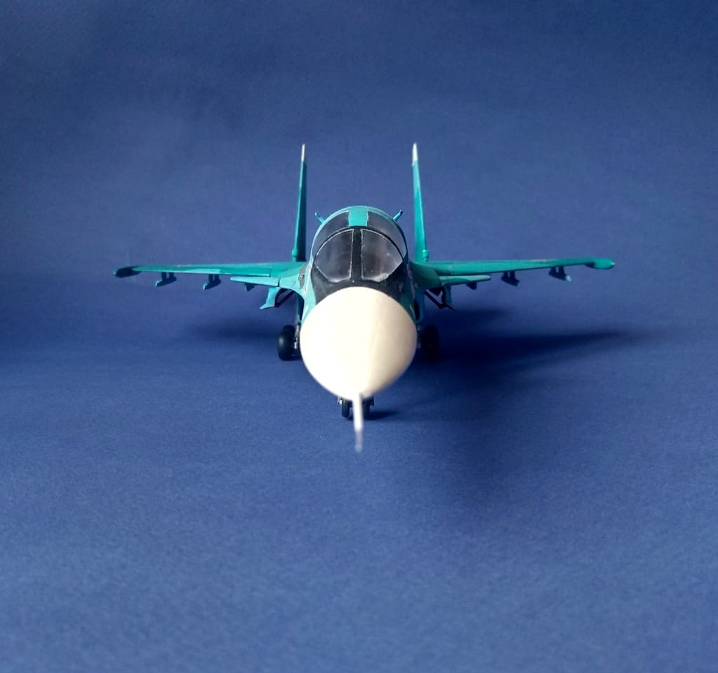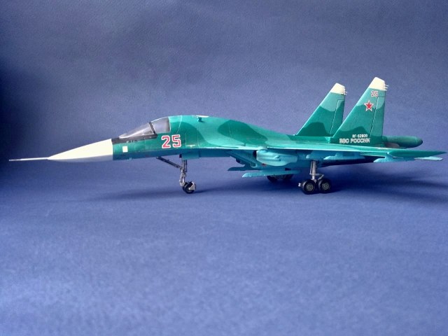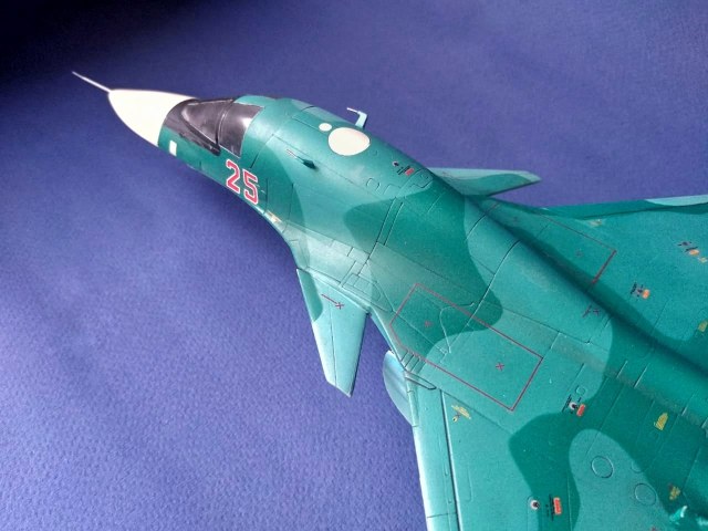 Всем привет! Модель от Звезды Су-34 - полная изкоробка. Окрашивал красками ArmaColors, эмалью Humbrol, лаки от Tamiya серии LP. Со смывкой поработать не получилось, расшивка хоть и глубокая, но не вышло.. Про копийность и древность модели знаю..Собираю для себя и получаю удовольствие)