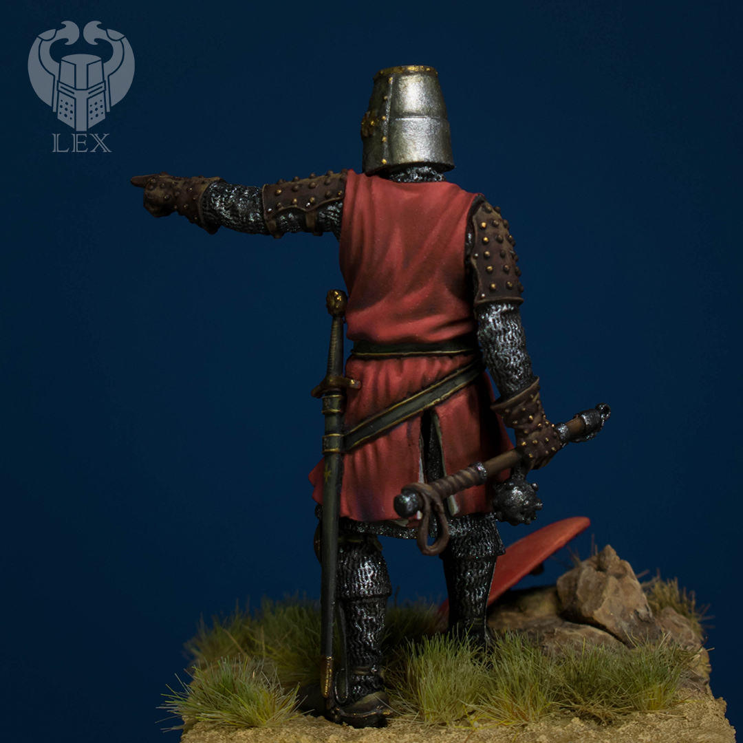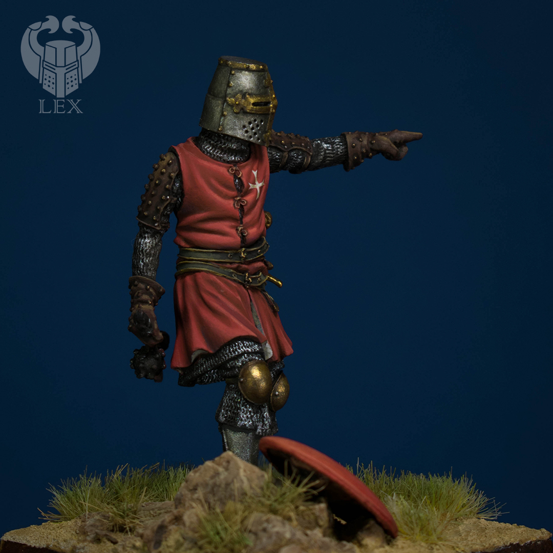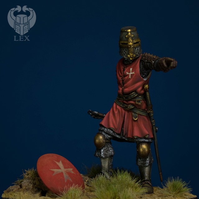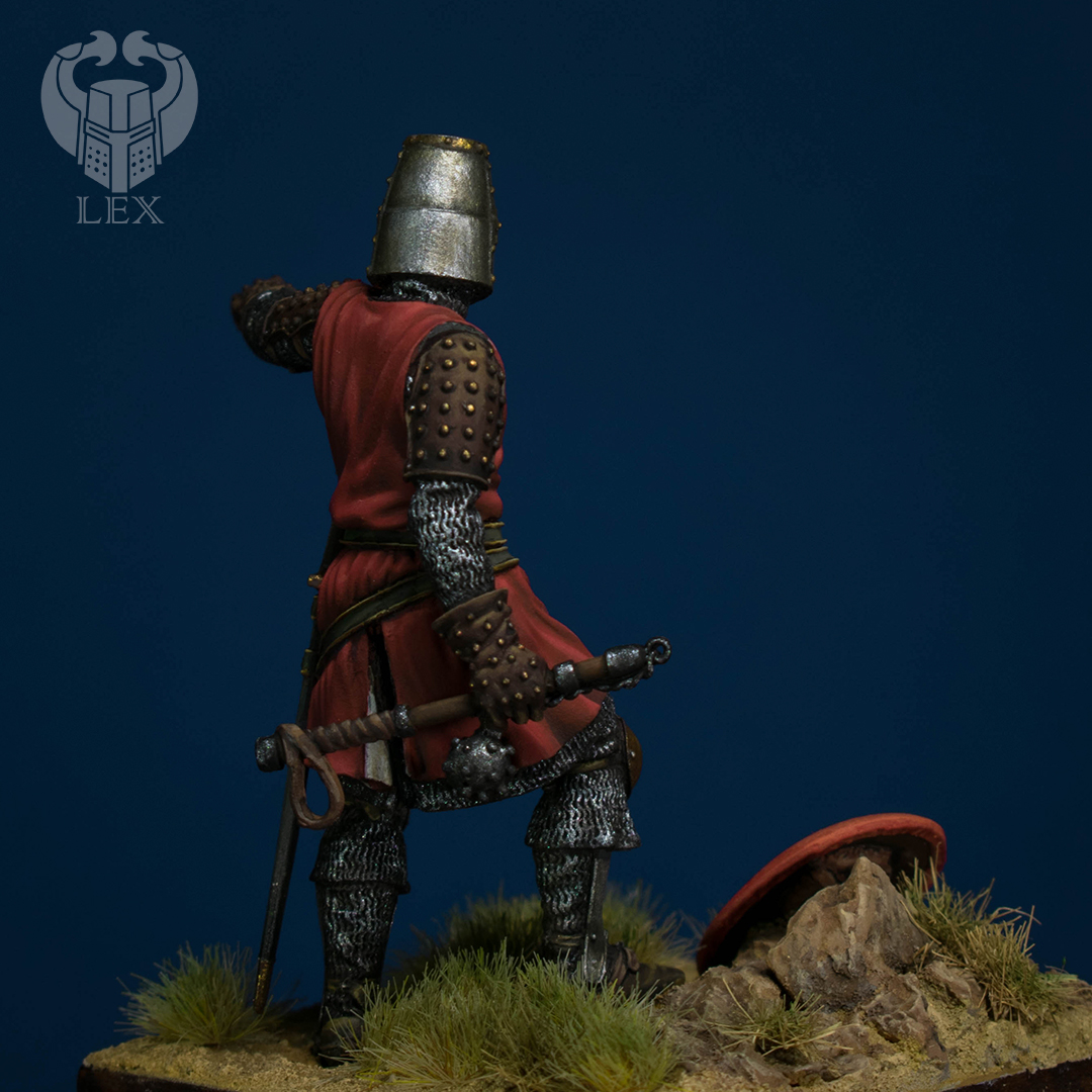 Роспись акрилом и маслом. Заменен шлем (в оригинальном ките шапель). Использован щит из другого набора от Ромео. На фото "экслибрисы" частной коллекции.