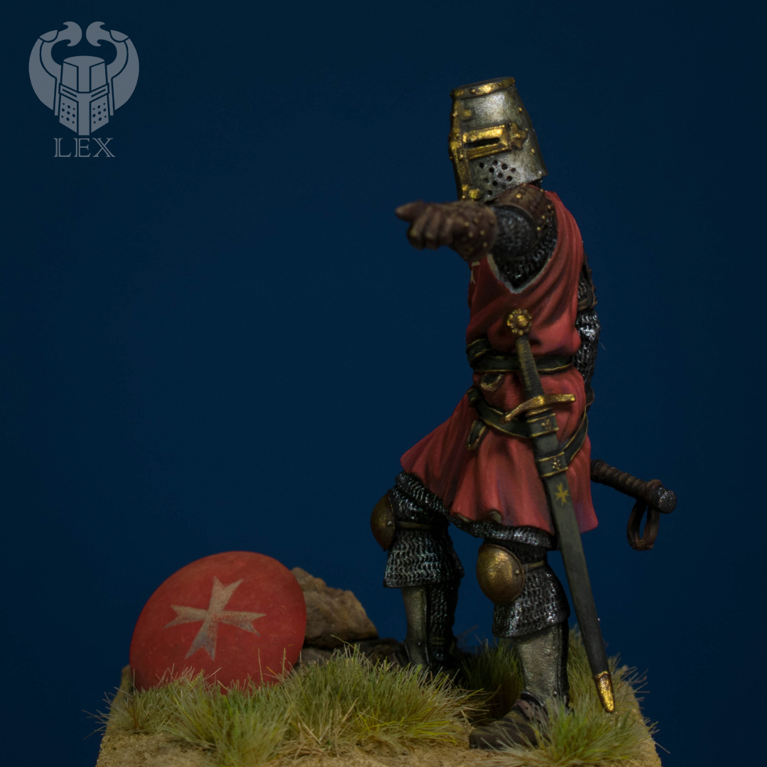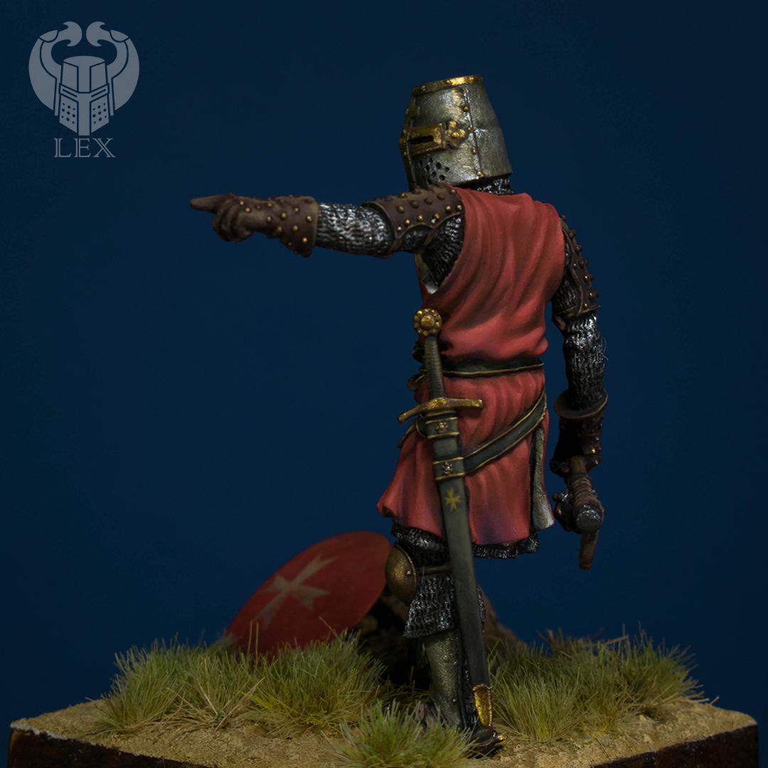 Фигура Пегасо м-ба 54 мм по задумке изображает рыцаря-иоаннита, высадившегося где-то на берегу Родоса в 1310 г. в составе основного десанта госпитальеров, поставившего точку в сопротивлении греков, и дающего указания подчиненным.