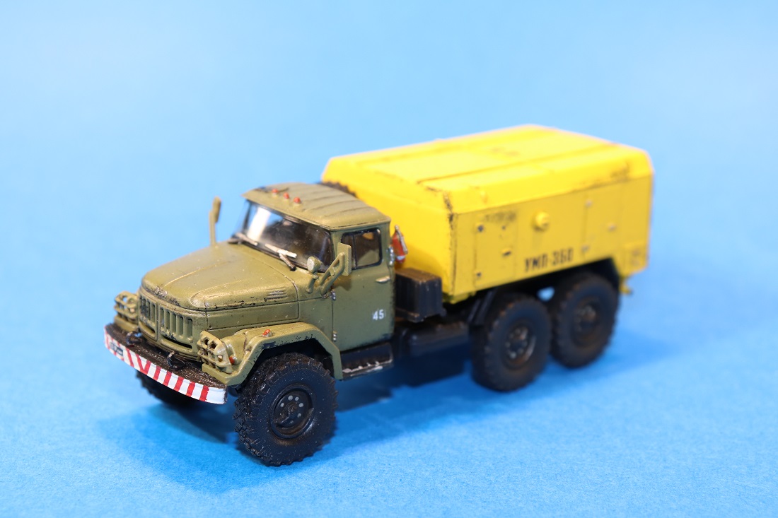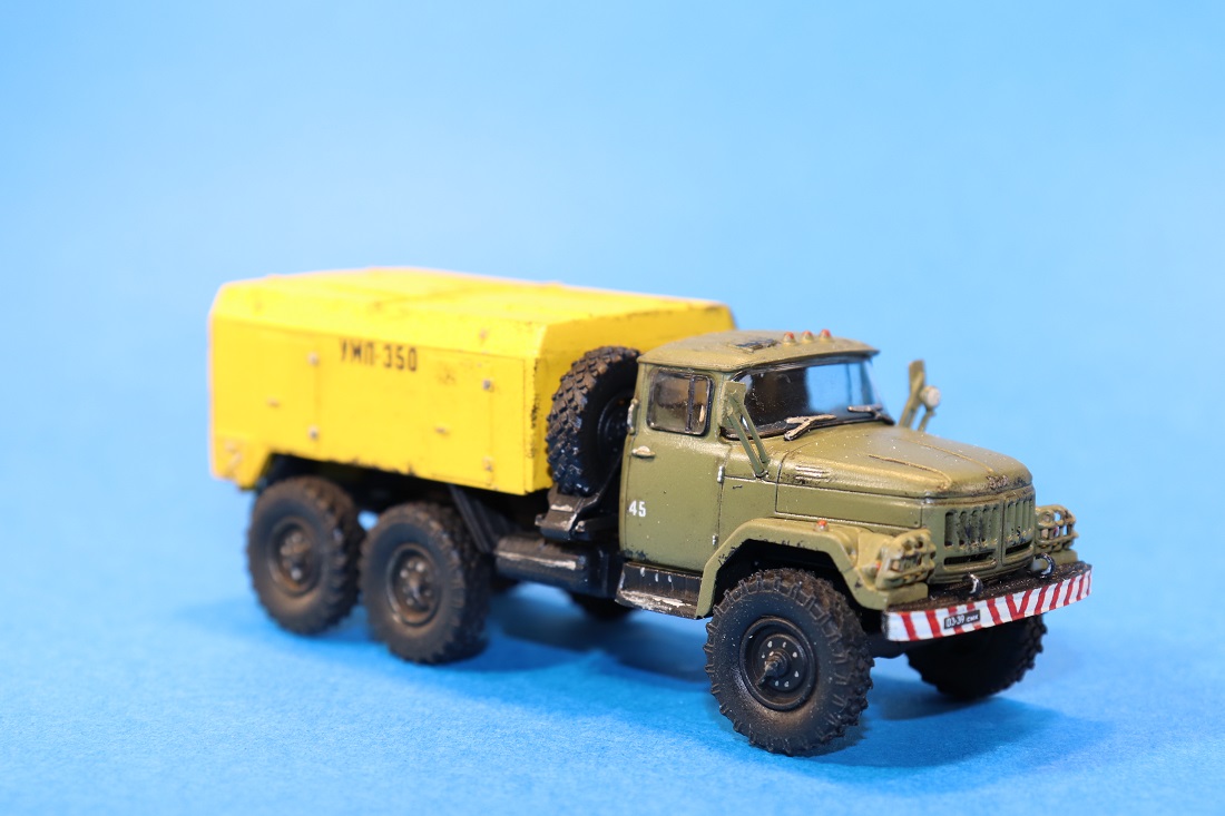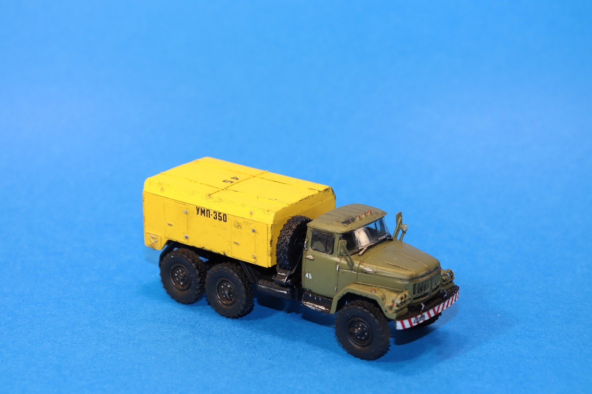 УМП-350 (131) в масштабе 1: 72, от фирмы AVD. Подогреватель унифицированный моторный УМП-350, смонтированный на шасси грузового автомобиля ЗИЛ-131, предназначен для подогрева двигателей горячим воздухом, обогрева кабин при температуре окружающего воздуха от плюс 10 до минус 55 гр.с.