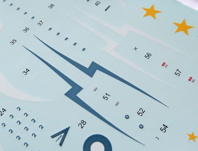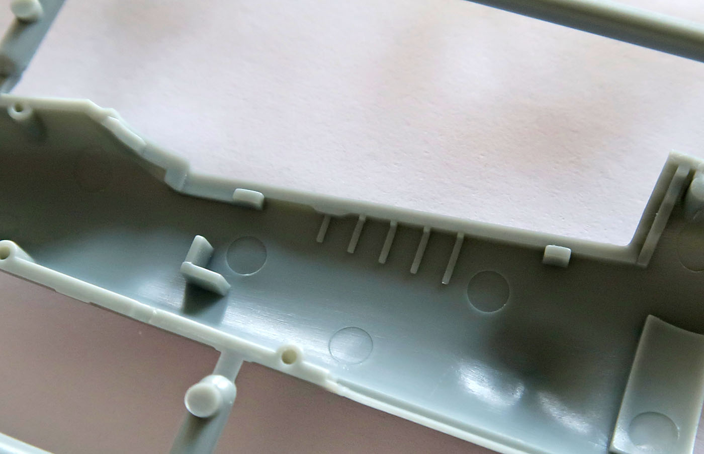 Деталировка умеренная, но четкая. Членение очень радует - крылья цельные и шов пойдет по линии их отъема и снизу. Сопло весьма приятно отлито. Внутри рельеф есть. Расшивочка неглубокая. Створки тоже с 2-х сторон.