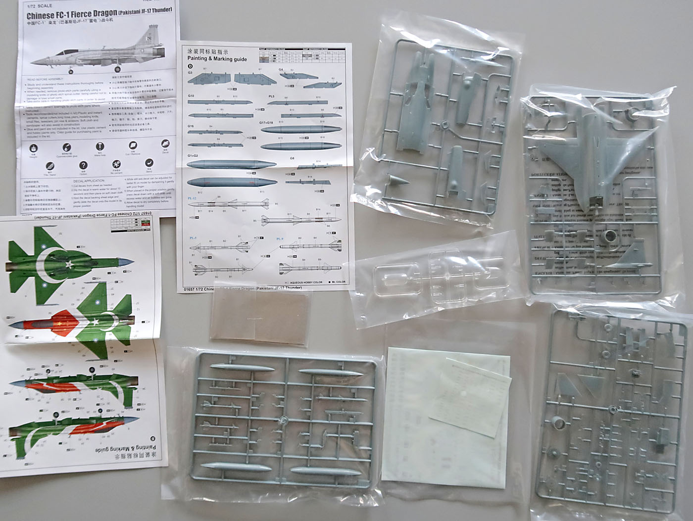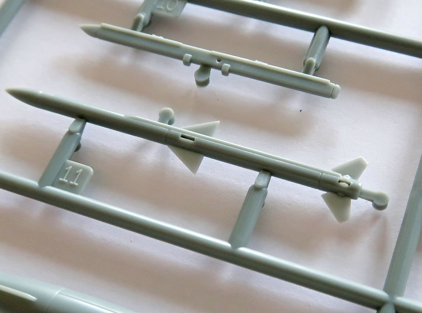 Ракеты знакомы мне по J-10 от того же производителя, но это иной литник и вроде бы даже аккуратнее пролит. Оперение местами радует малой толщиной.