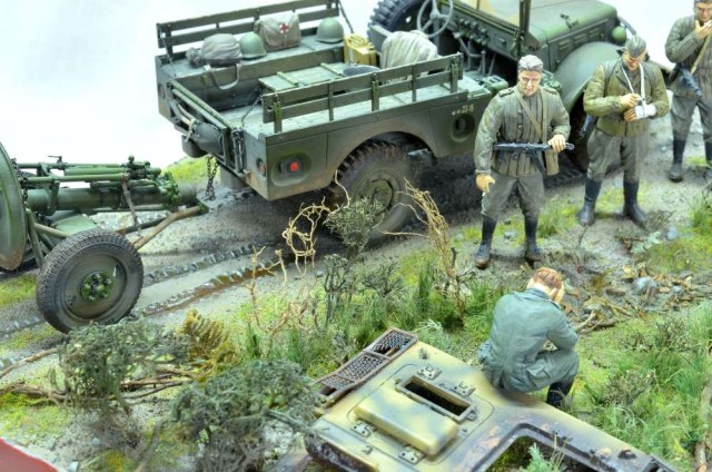 Согласен, но просто поставить технику и бойцов на подставку, не интересно, еще поэтому и появляются подобные детали. Естественно если на диораме немцы, то будут обломки советской техники и наоборот.
