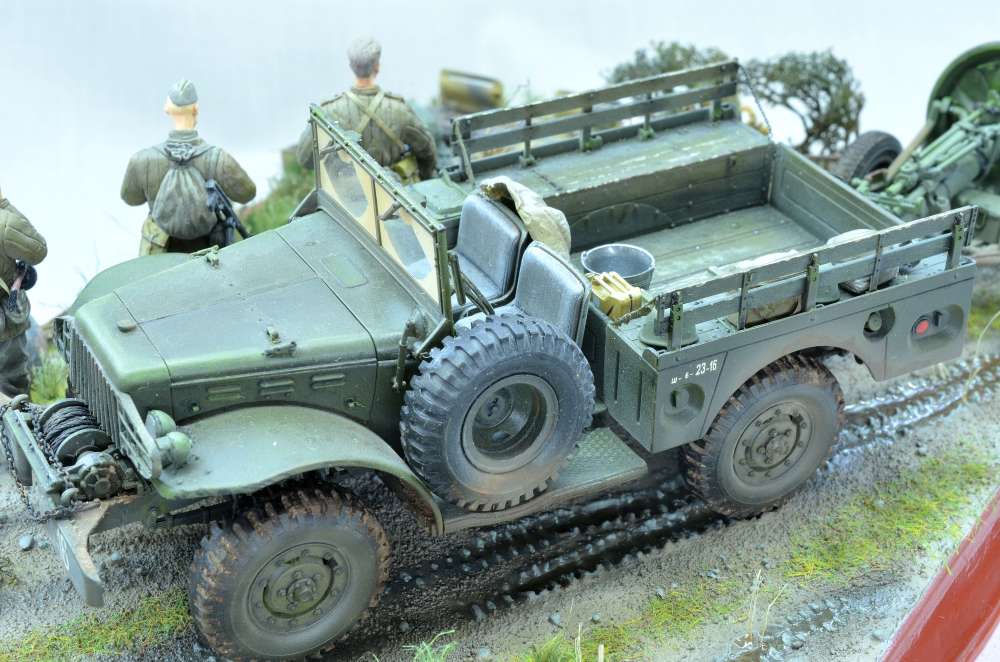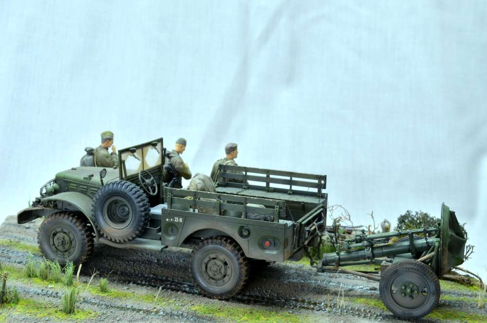 Отлично получилось. Чуть понужу: лучше бы прицепить к Доджу Зис-3. Тогда бы вообще был угар - противотанковое подразделение знакомится со своим результатом. ))