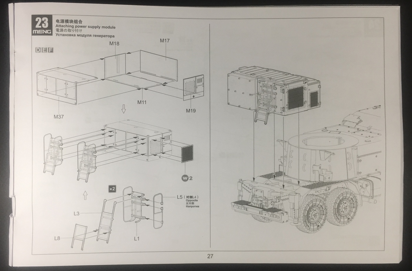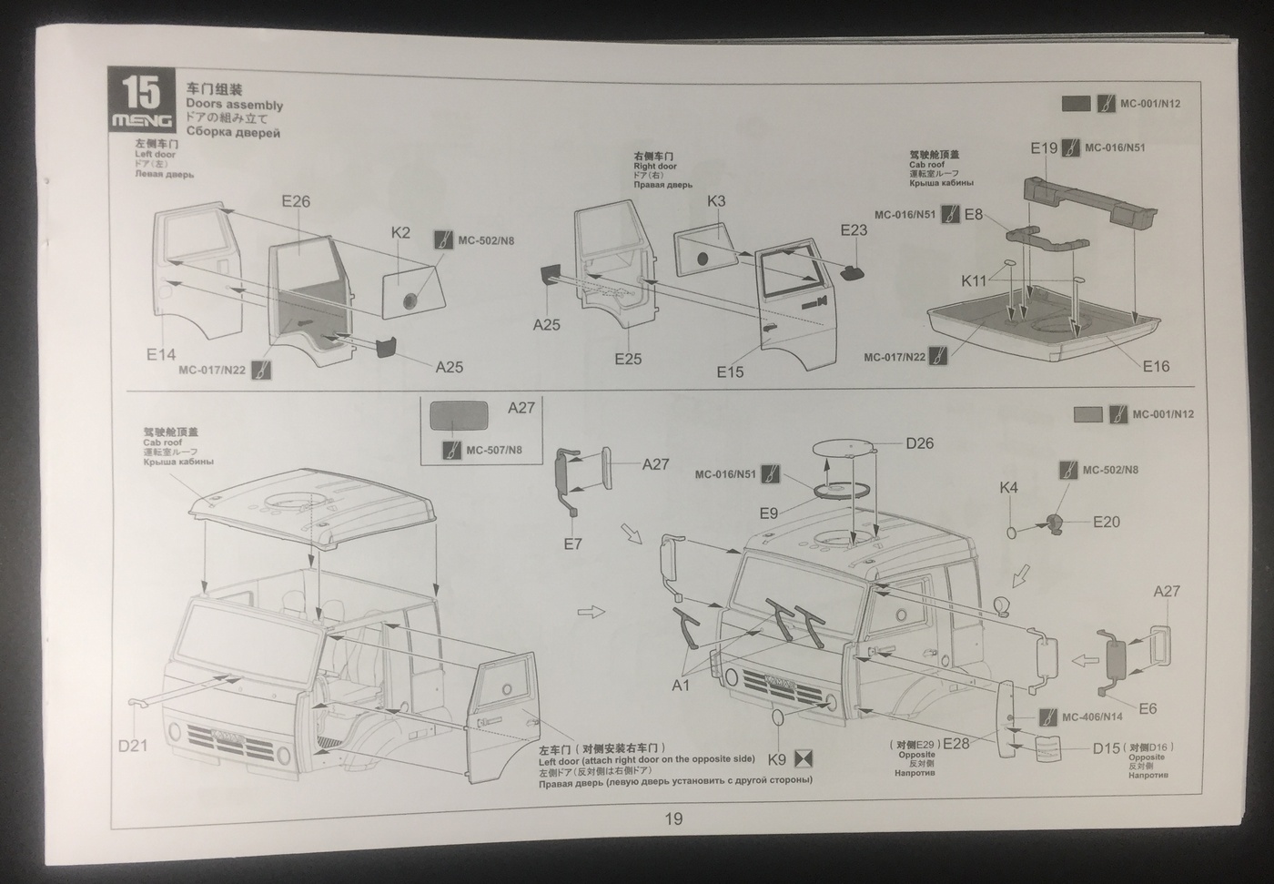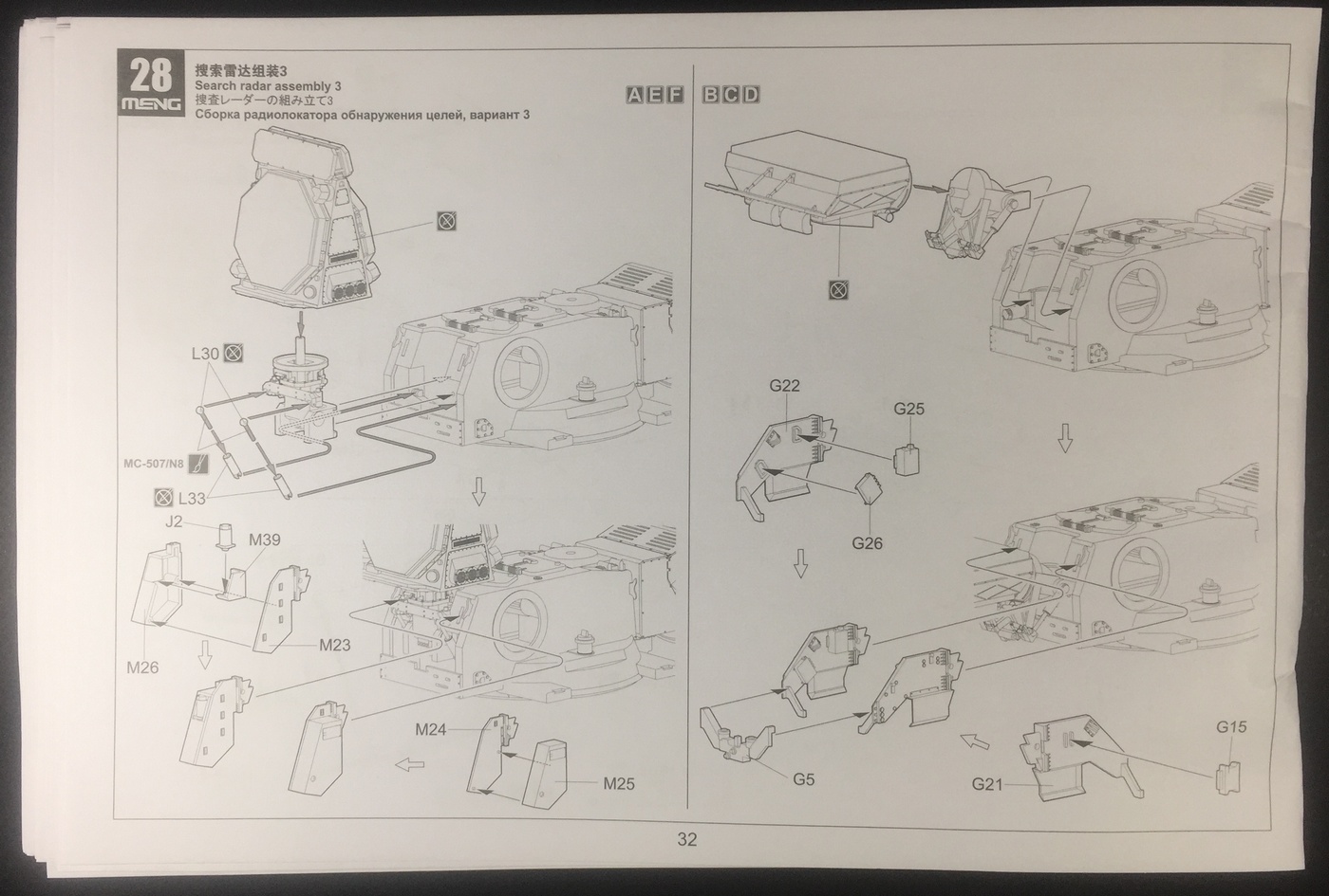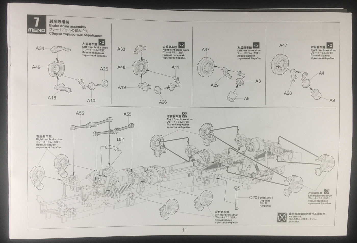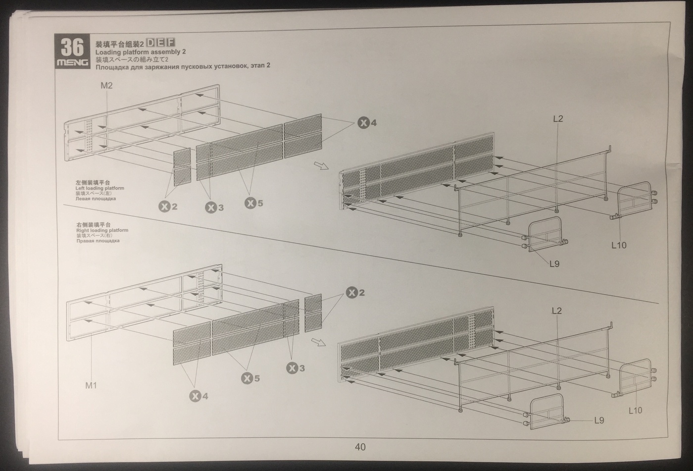 Что касается качества литья, оно на высшем уровне, как обычно у Менга, мелочевка отлита очень тщательно, смещения пресс-форм и облоя нет практически. Конечно, детали все равно приходится зачищать и обрабатывать, но по минимуму. Стыкуемость (на момент написания я уже собрал его наполовину) идеальная, щелей нет, все встает на свои места как родное. Процесс сборки довольно простой, вменяемо описан в инструкции. Даже путаницы с шестью опциями почти не возникает - но чтобы ее не возникало, инструкцию следует изучить внимательно заранее, и вычеркнуть все ненужные этапы! Инструкция толщиной примерно как Война и Мир, 44 страницы + 6 цветных отдельной вкладкой.
