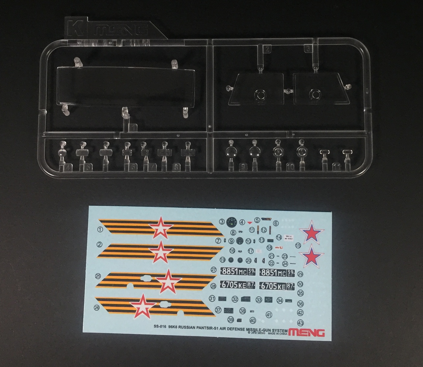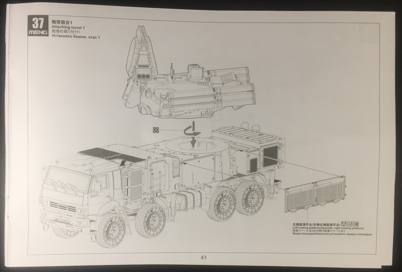 Набор предлагает шесть опций, которые слегка отличаются по сборке, окраске и маркировки. Жаль, что не указано, как точно называются все эти модификации, от арктического до сирийского и иракского варианта. С1Э, СА, С2??? Тут придется рыть информацию. Из дополнительных опций - походное/боевое положении упоров, все пушки и ракетные блоки можно изобразить под любым углом, (но придется их фиксировать клеем), башня вращается. А вот радары у нескольких вариантов находятся в положении "лежа" и не поднимаются. Двери кабины можно открыть, интерьер только в водительской кабине. Сама кабина не поднимается (чтобы рассмотреть двигатель). Но наверное можно ее зафиксировать в открытом положении. Двигатель кстати очень детально проработан, и это отличает МЕНГ от Тайгера, где движка нет. Жаль, что нет интерьера кабины управления, модуля генератора и башни.