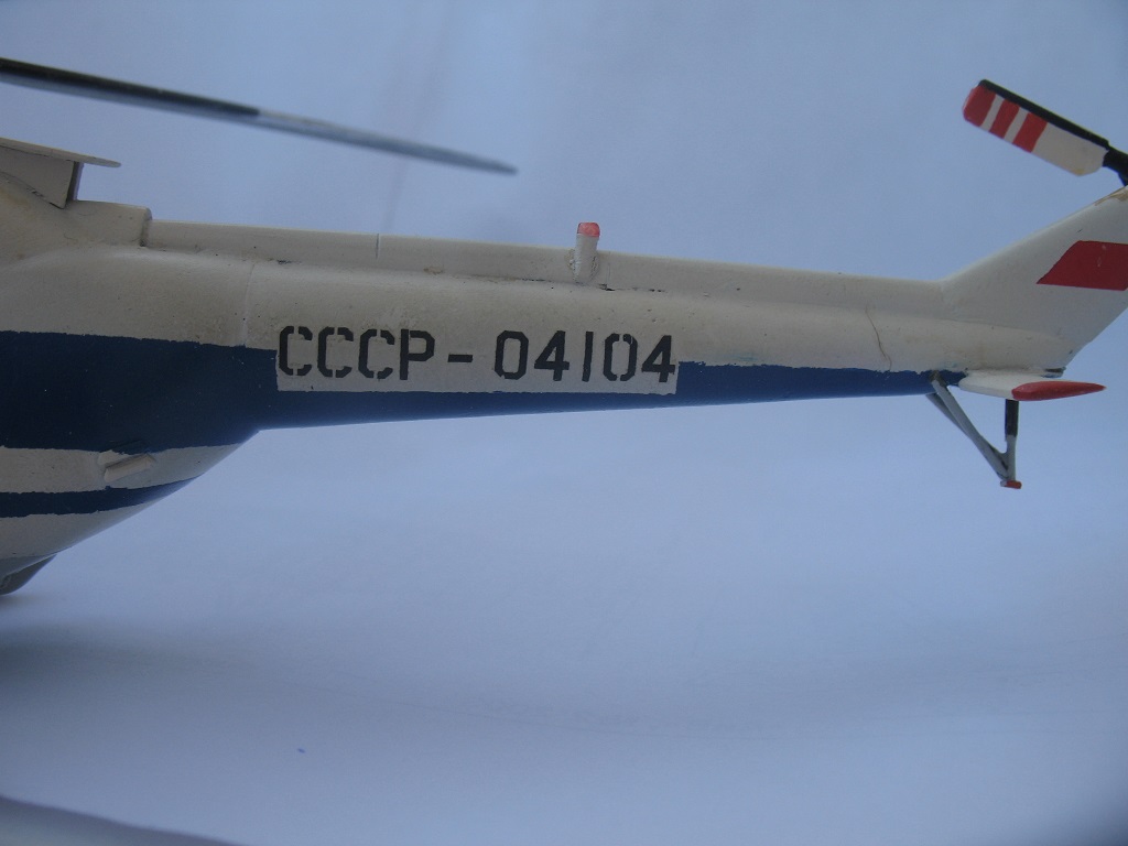 Вертолет В-3 Сокол построенный на авиазаводе в польском г.Свидник проходил производственные испытания в Котласском ОАО.Всего было 10 вертолетов с номерами от 04101 до 04110.После испытаний эти вертолеты участвовали в акции по тушению пожаров в Испании но уже с польской регистрацией.Модель строилась с обмером реального вертолета.Стекла и блистера выдавливались из 1 мм оргстекла.Окраска - нитрокраской. Модель строилась в Испании на полевой площадке в 1995 году.