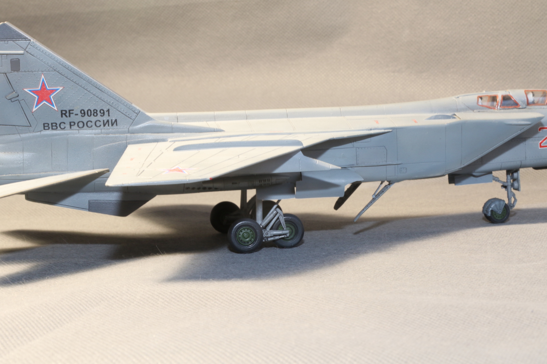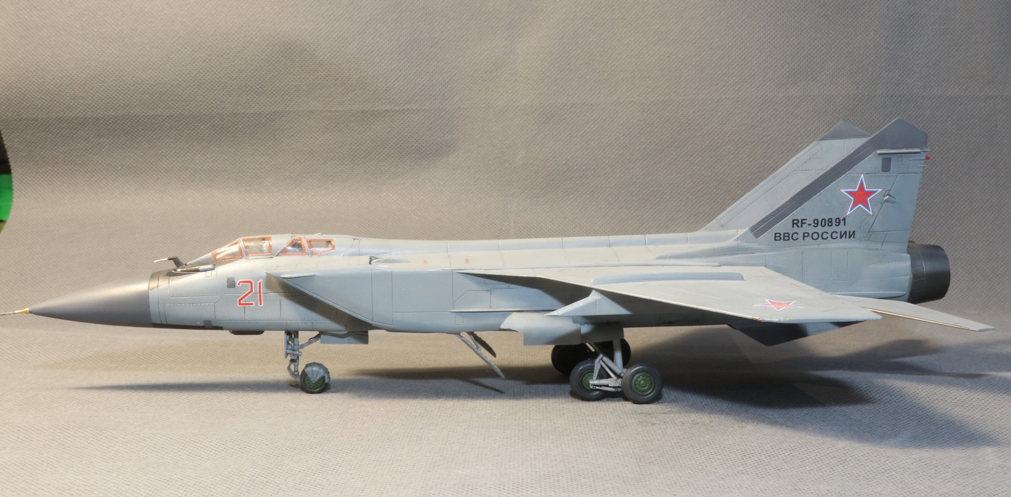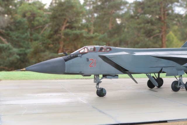 Приветствую Всех уважаемые коллеги .Хочу предложить Вашему вниманию модель самолета МиГ-31 БМ в 1\72м масштабе от фирмы Звезда.Из доработак исправил сопла,точнее сточил гребни на них и добавил внутрянку.Накатал клеп,хотя его вроде не много судя по фото реал Мигов.Добавил пвд от Master и фары от Elf.Красилось все акрилом Тамия . Всем приятного просмотра!