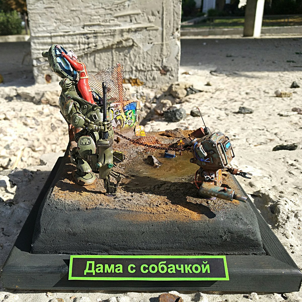 "Дама с собачкой" - футуристический, псевдореальный, многозадачныый боевой отряд. Зритель застал из в минуту отдыха солнечным утром, после ночного патрулирования одного из районов города, вернее того что от него осталось... Вашему вниманию несколько телефонных фото.