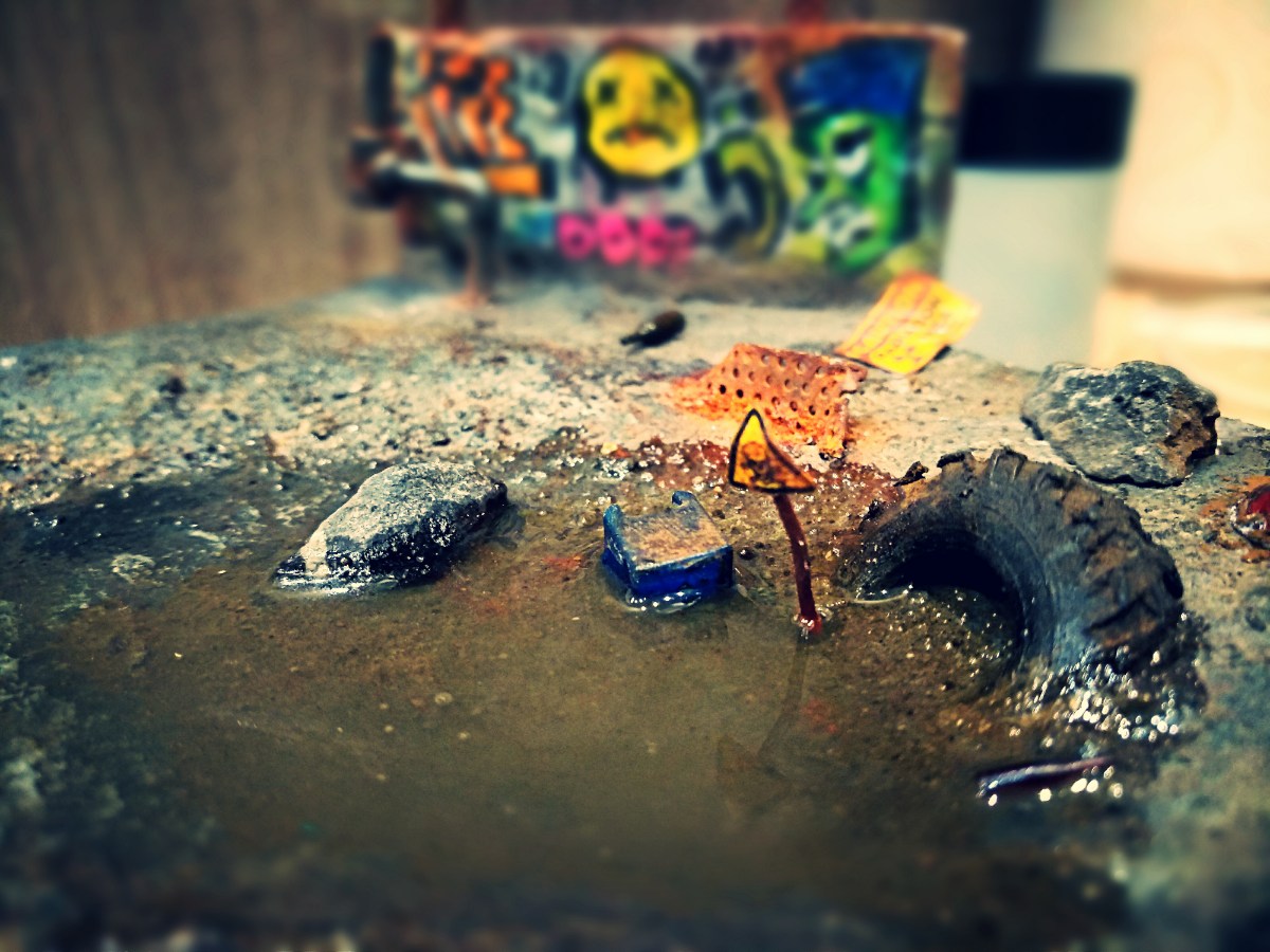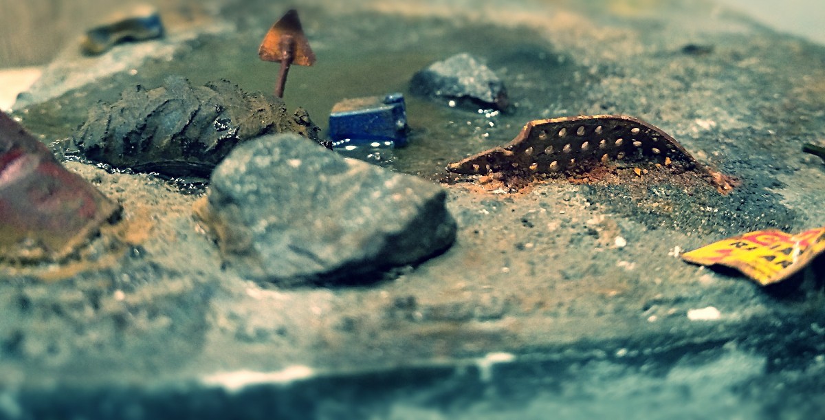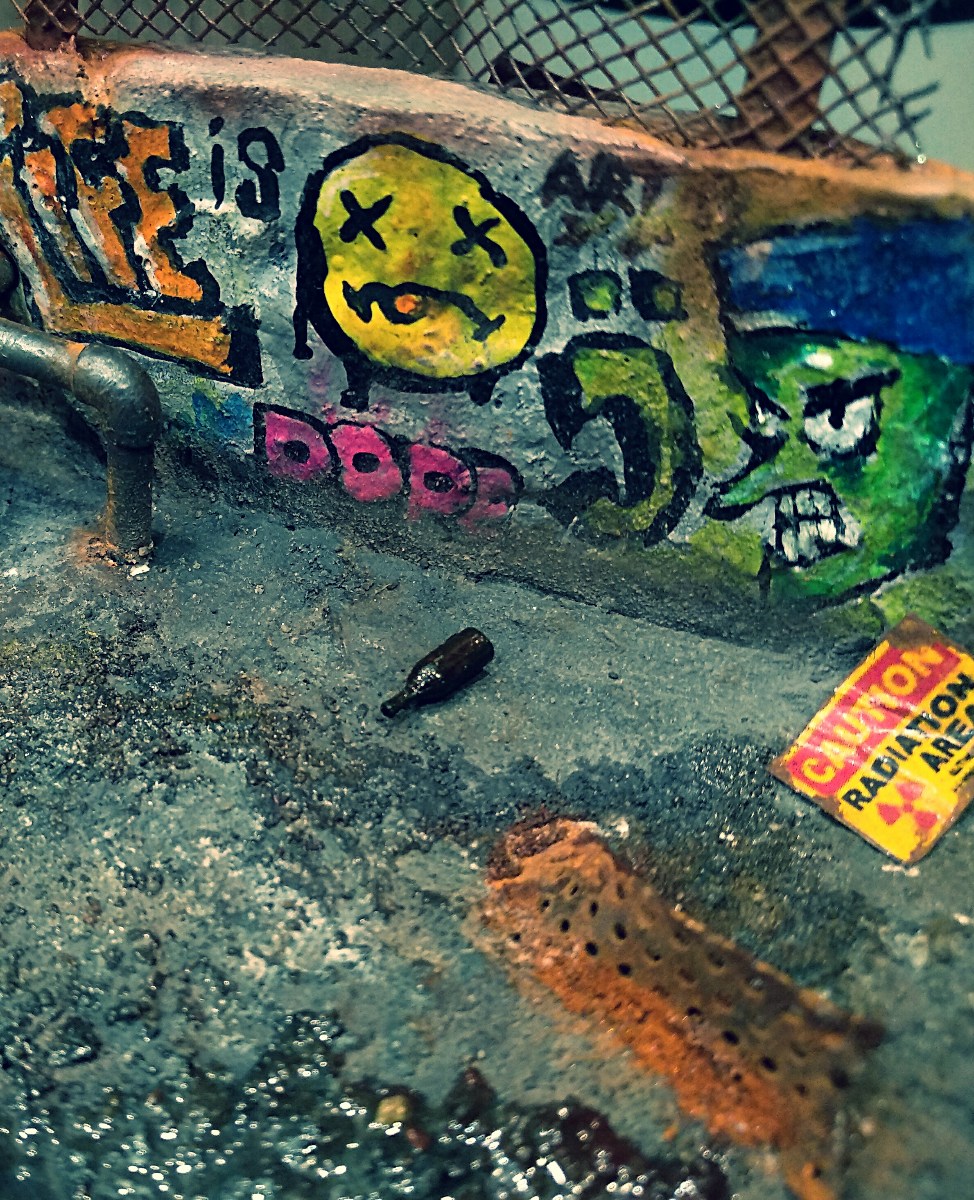 В центре - лужа (выполнена из эпоксидной смолы). Бронированной технике с радиационной защитой не страшна, а вот пить из нее не стоит. В общем - пока такие времена, а там - посмотрим! Выжили, значит не все так плохо! Постапокалиптическая тематика - интересная штука. Одна из моих фантазий на эту тему представлена в данной диораме!