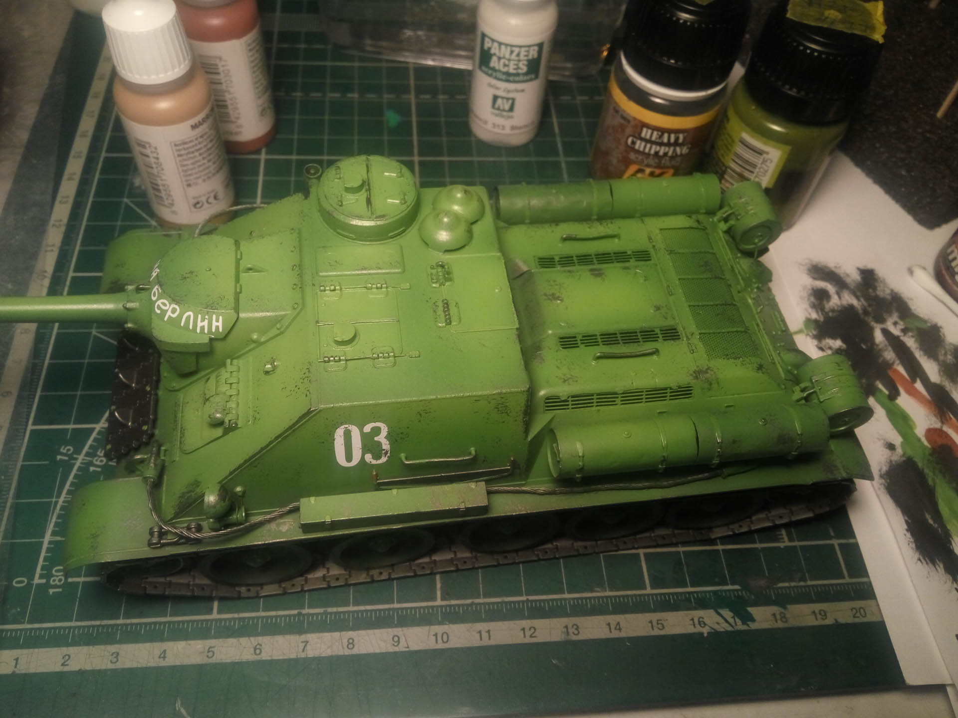 Зимник определенно не удался. Самоходка выглядит так, будто вы пытались скрыть жуткие косяки на запоротой модели. Но на последних фотках видно, что собрано аккуратно и базовая окраска с модуляциями вполне получились (это не про 4БО, а про качество). А вот итог совершенно не понравился.