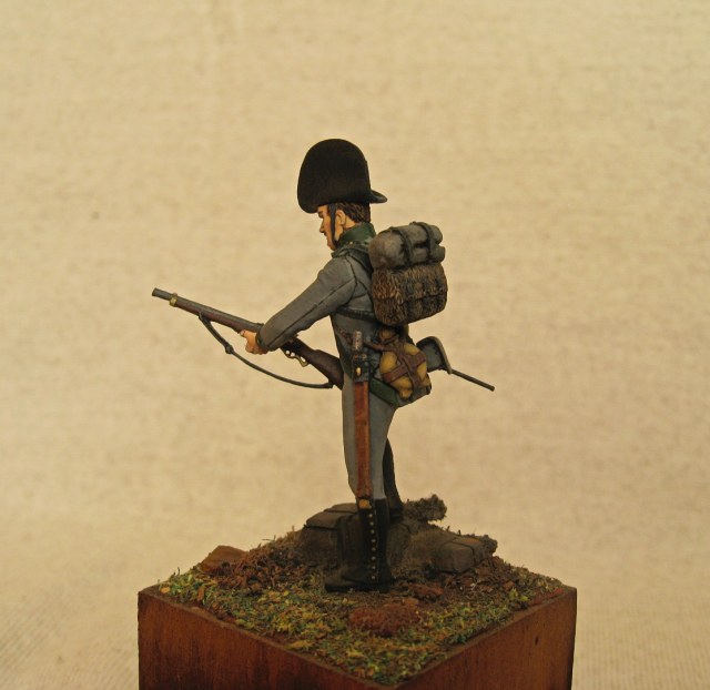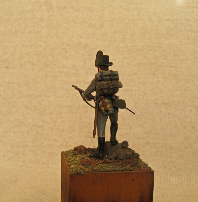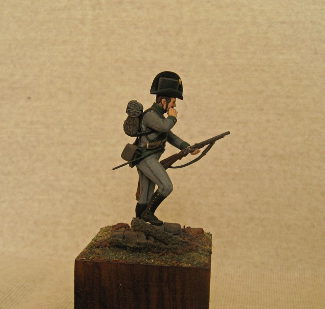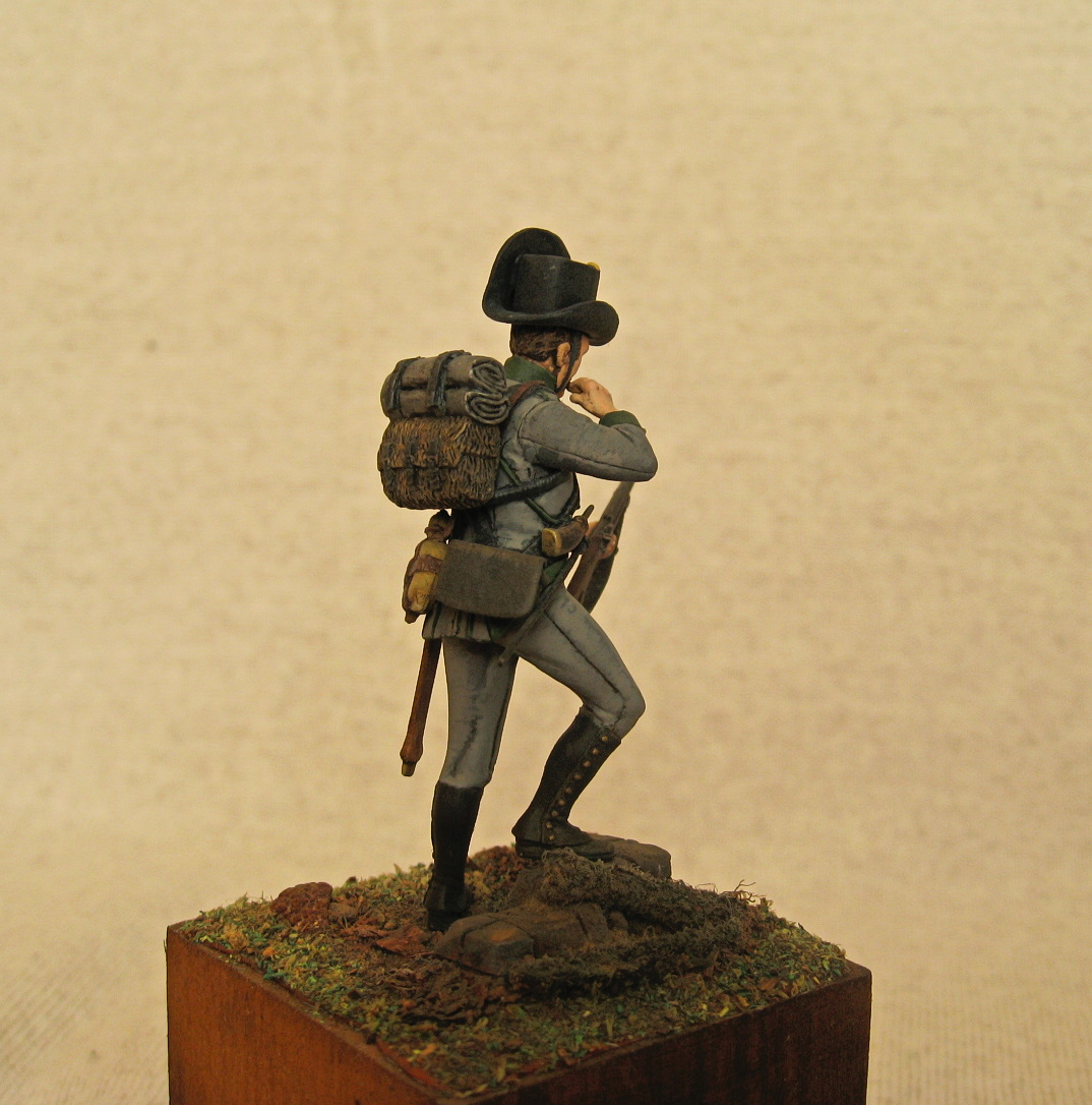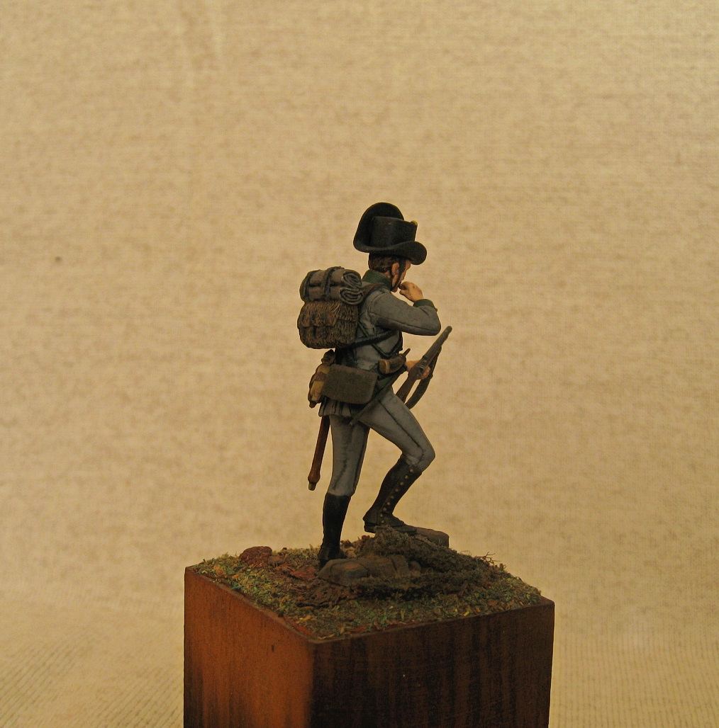 Здравствуйте. Вот такой егерь стрелковых батальонов Австрийской империи. Все батальоны имели одинаковую униформу, различаясь лишь номером на пуговицах. Сама фигура - великолепное качество, смола, 54 мм. Акрил, эмаль, чуть масла. Надеюсь, эта замечательная контора, дойдет, когда-нибудь, и до русской армии)))