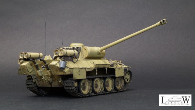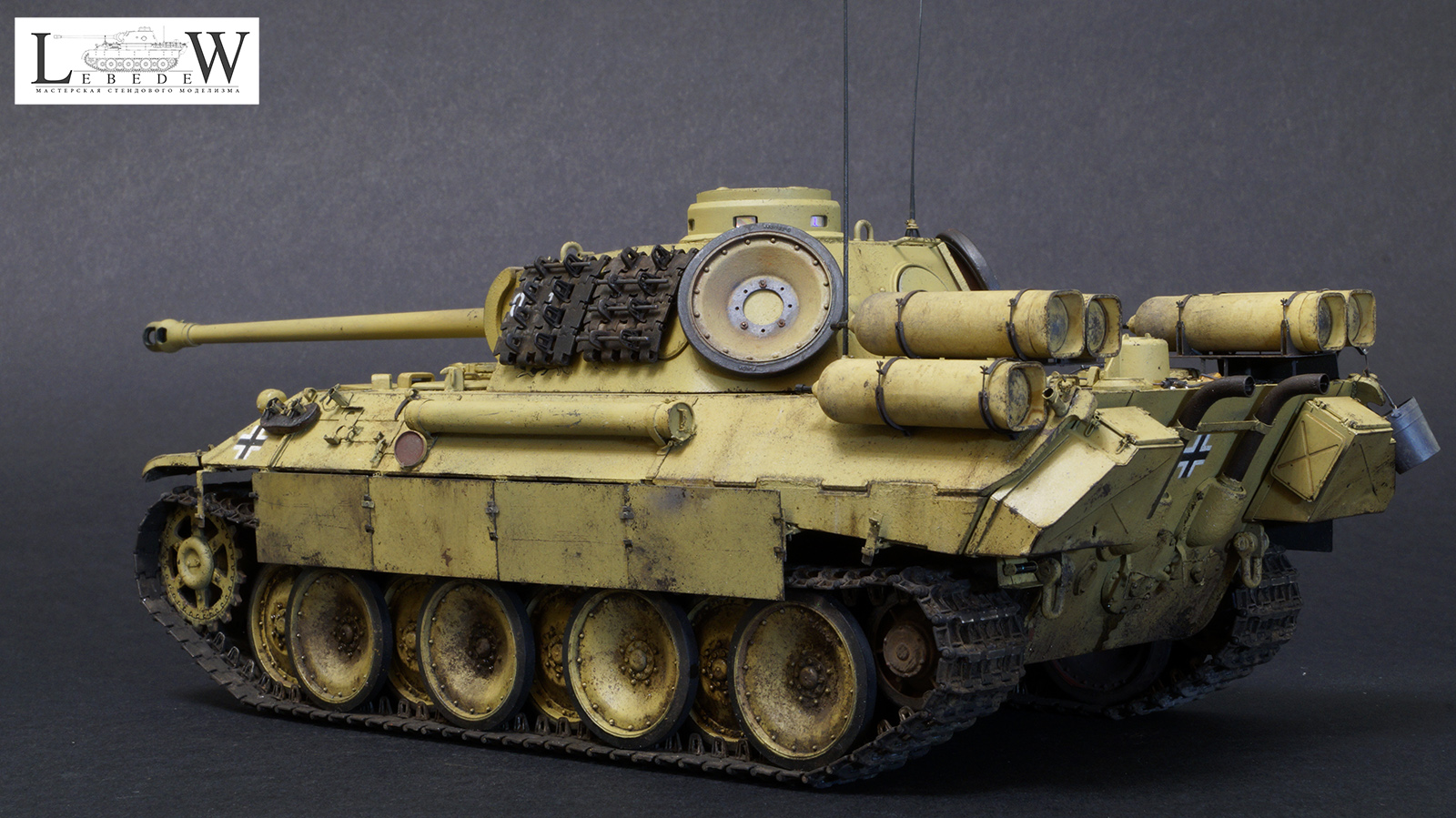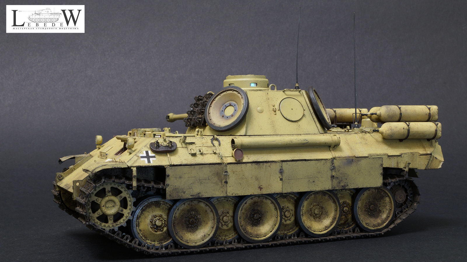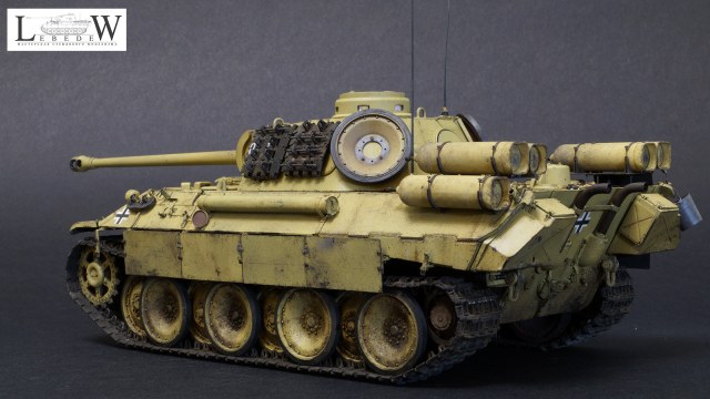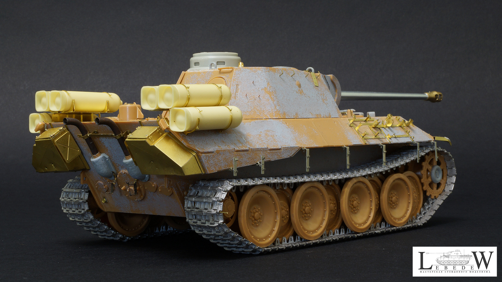 При создании этой работы решил впервые поддержать отечественного производителя. Набор от Звезды не плох, но естественно его пришлось модернизировать, так как проработка деталей оставляет желать лучшего. Бала естественно заменена ком башня, убраны лишние болты с опорных катков, заменена ручка на корме башни и броня вентилятора, заменена бронезащита стрелка на лицевой броне, бортовые крепления шанцевого инструмента поставлены на нужные места и по мелочи. В идеале нужно было заменить башню целиком, так как вопрос и по маске орудия есть и по задней плите, но решил оставить так.