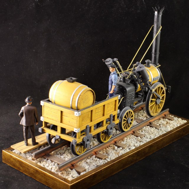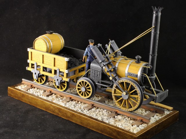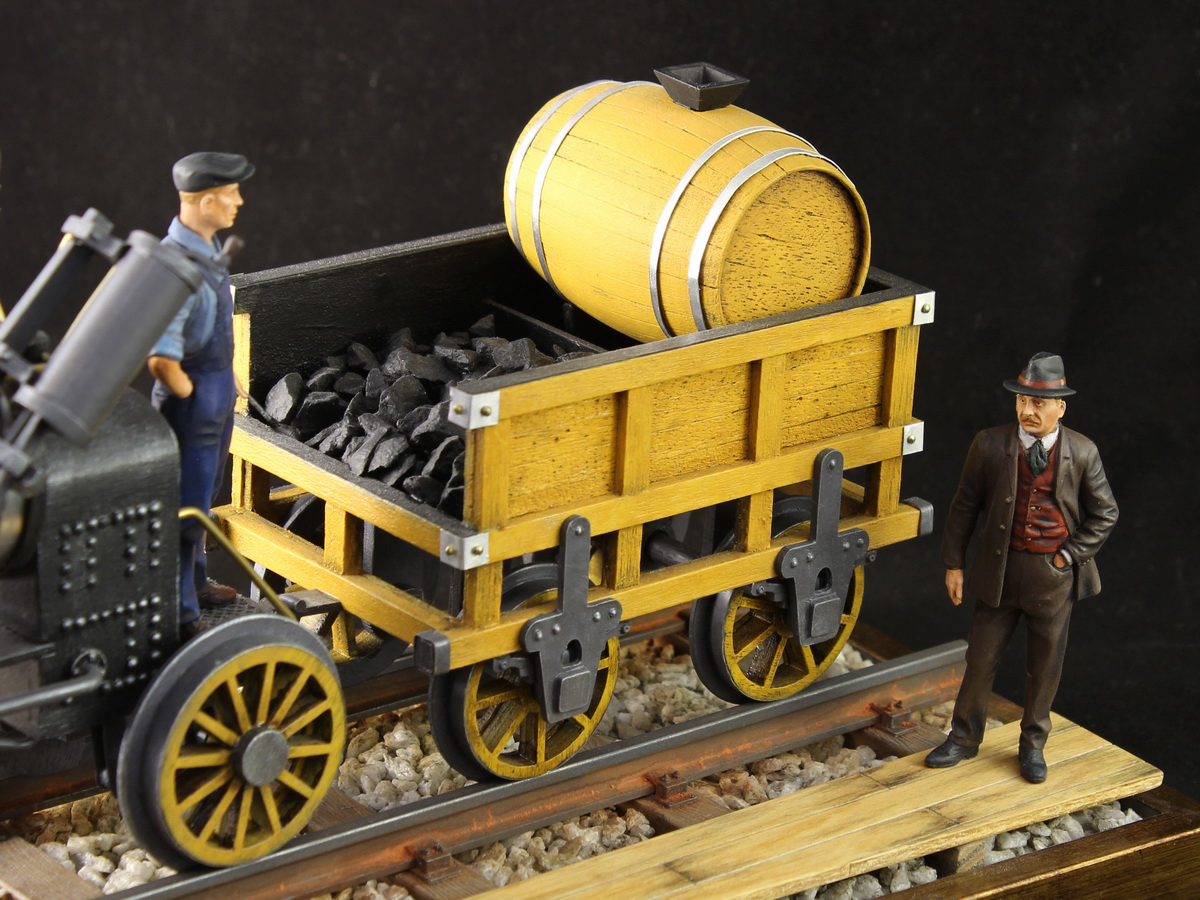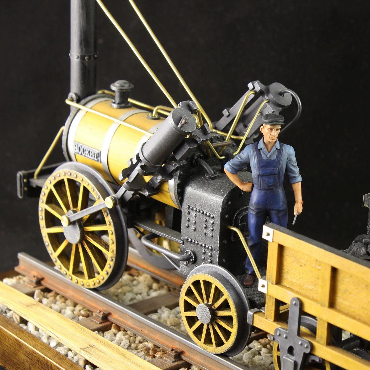 Модель паровоза Rocket, фирма OcCre (Испания), масштаб 1:24. Материалы - дерево, металл. Фигурки ICM.