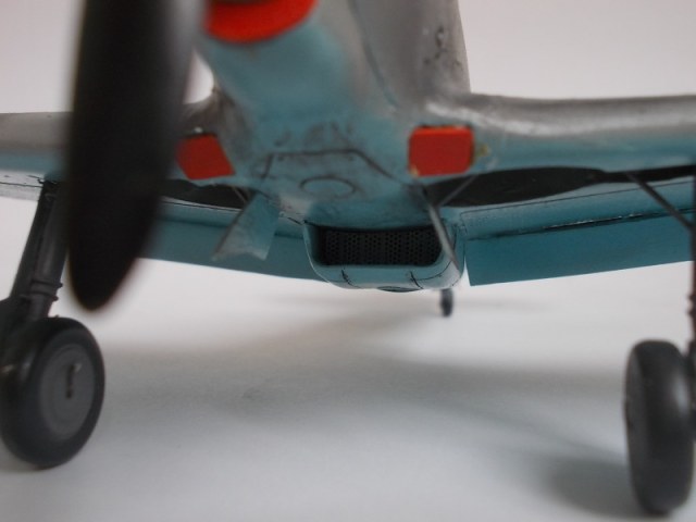 Но если уж придираться к изготовлению, то нет люка доступа к радиооборудованию (на "спине" за кабиной), совсем неверно сделаны подкосы шасси, прозрачный бронезаголовок огибался стальной полосой-держателем (торец стекла надо было закрасить под интерьерный металл), сидушка для очень уж узкопопого летчика, "солдатики" вроде были красными, надо было также сделать торчащую трубку ствола ШВАКа из кока...