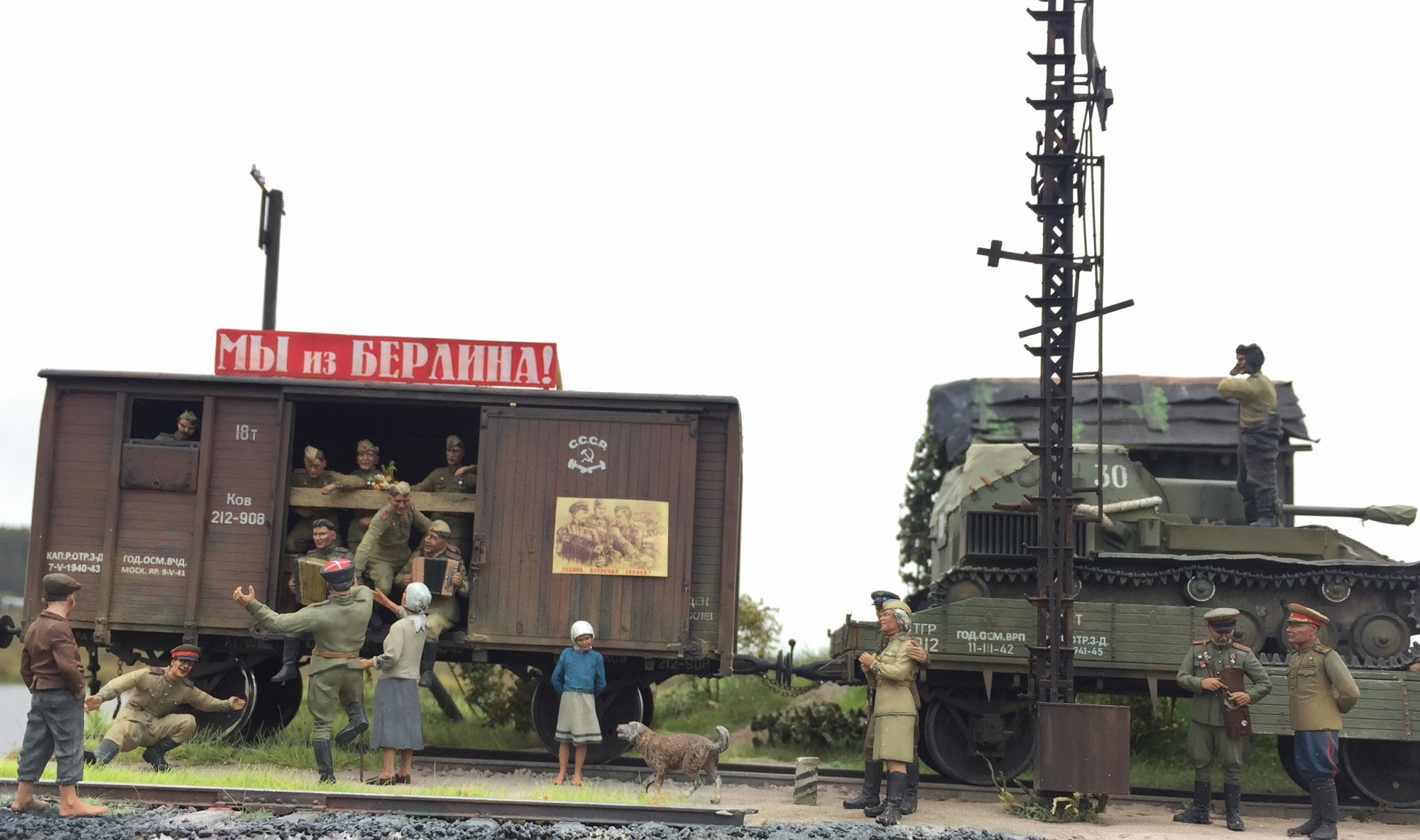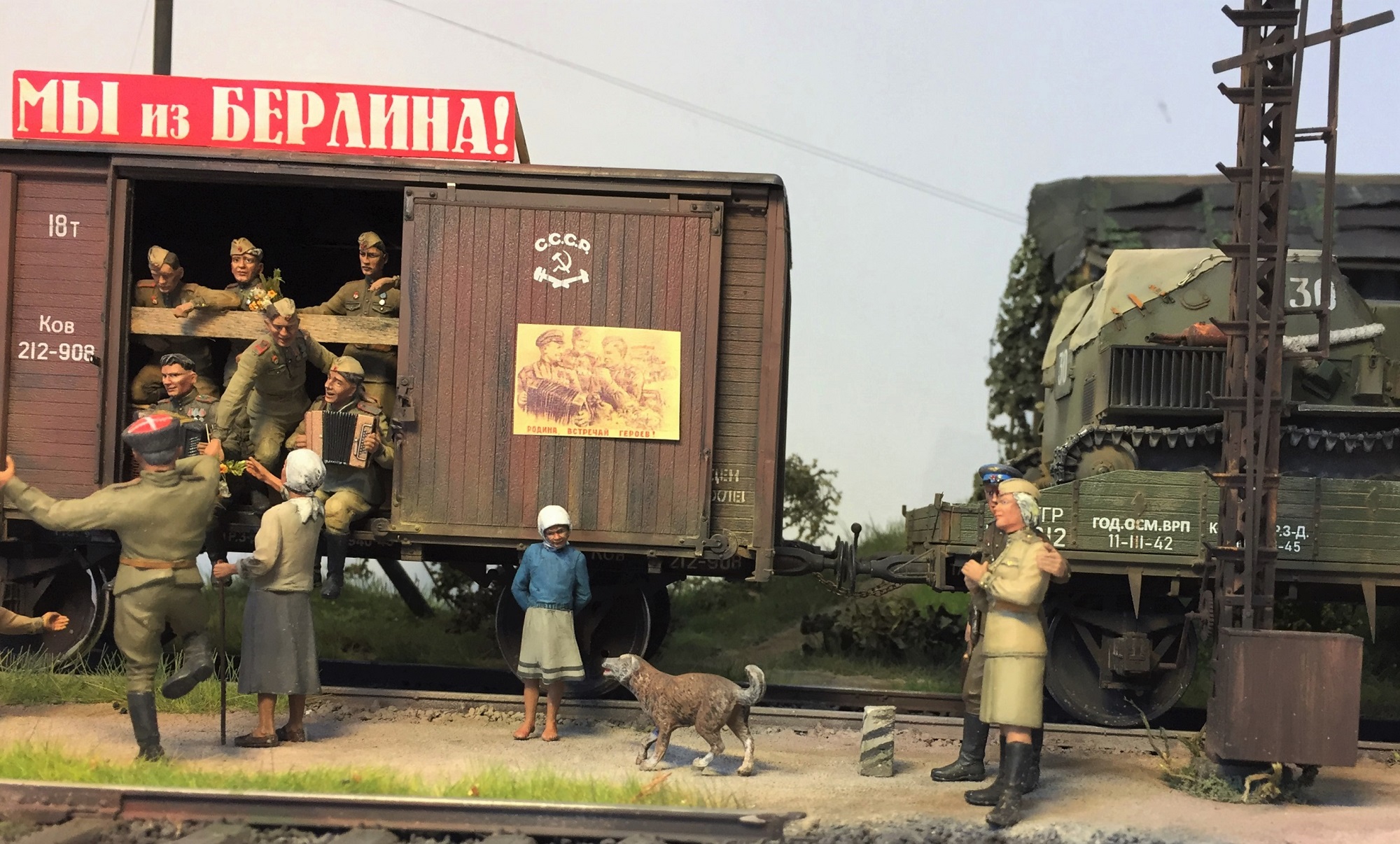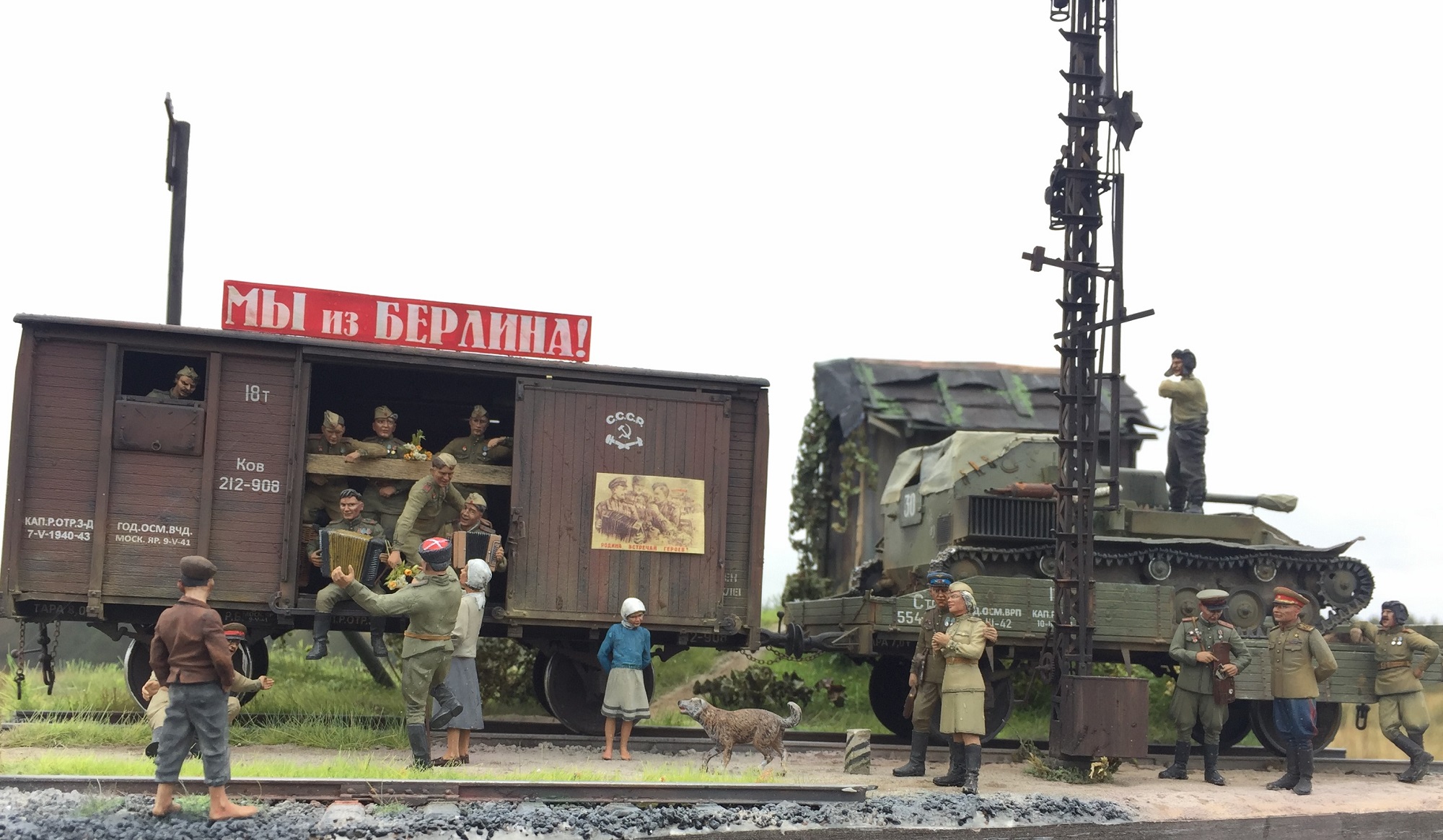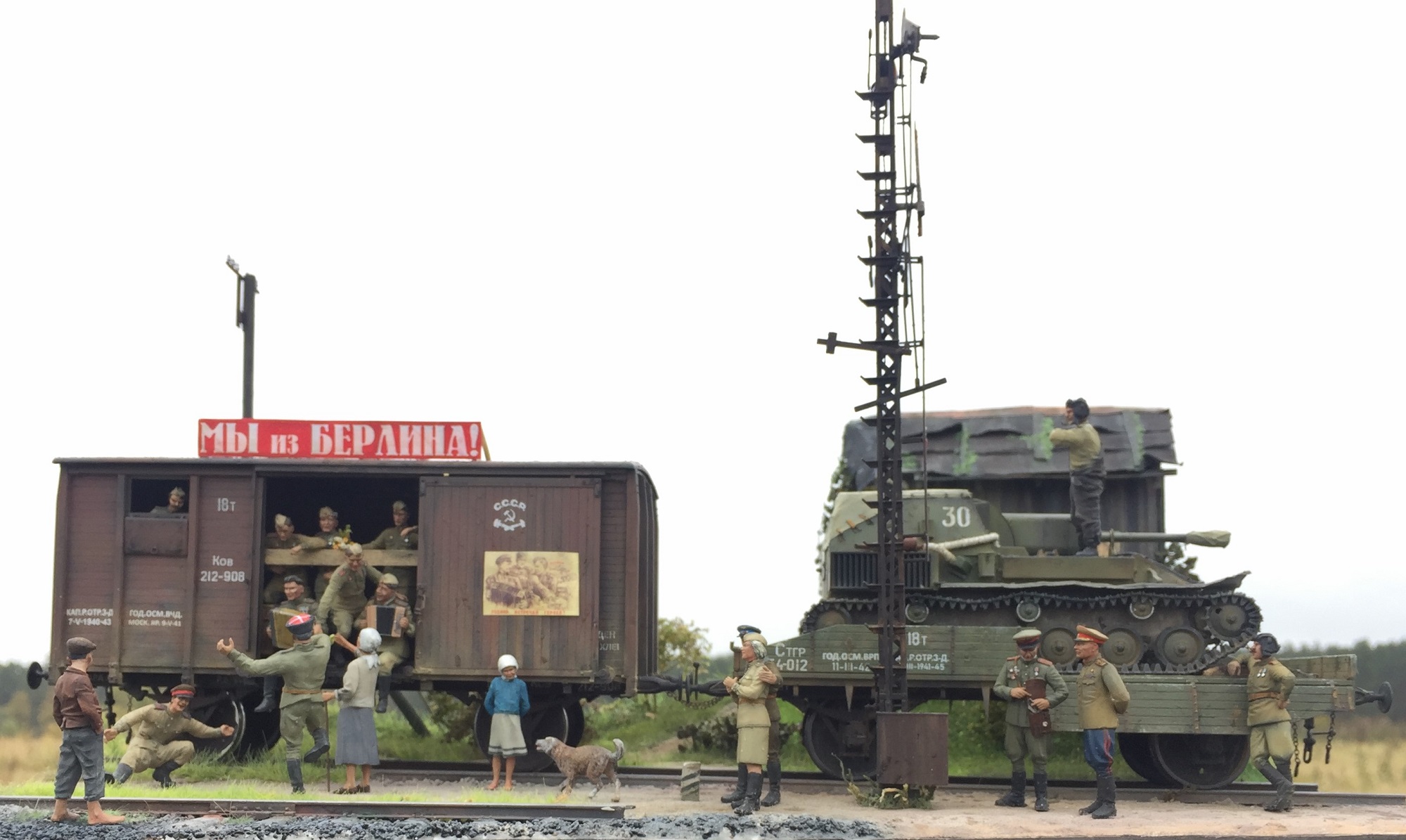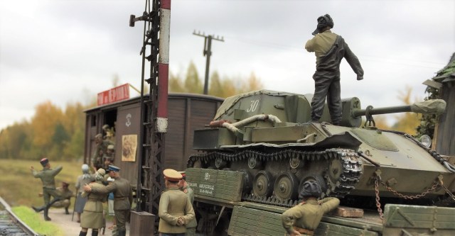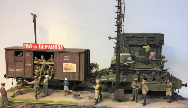 Доброго всем время суток! Закончил, а может еще внесу коррективы в очередную диораму. О сборке применял большое количество разных фигурок, пилил резал подгонял! вагоны от миниарта тут все из коробочное, су 76 от тамии так же почти не чего не делал кроме как натянул тент , добавил ремни . Вот то что получилось. ПРИЯТНОГО ПРОСМОТРА!