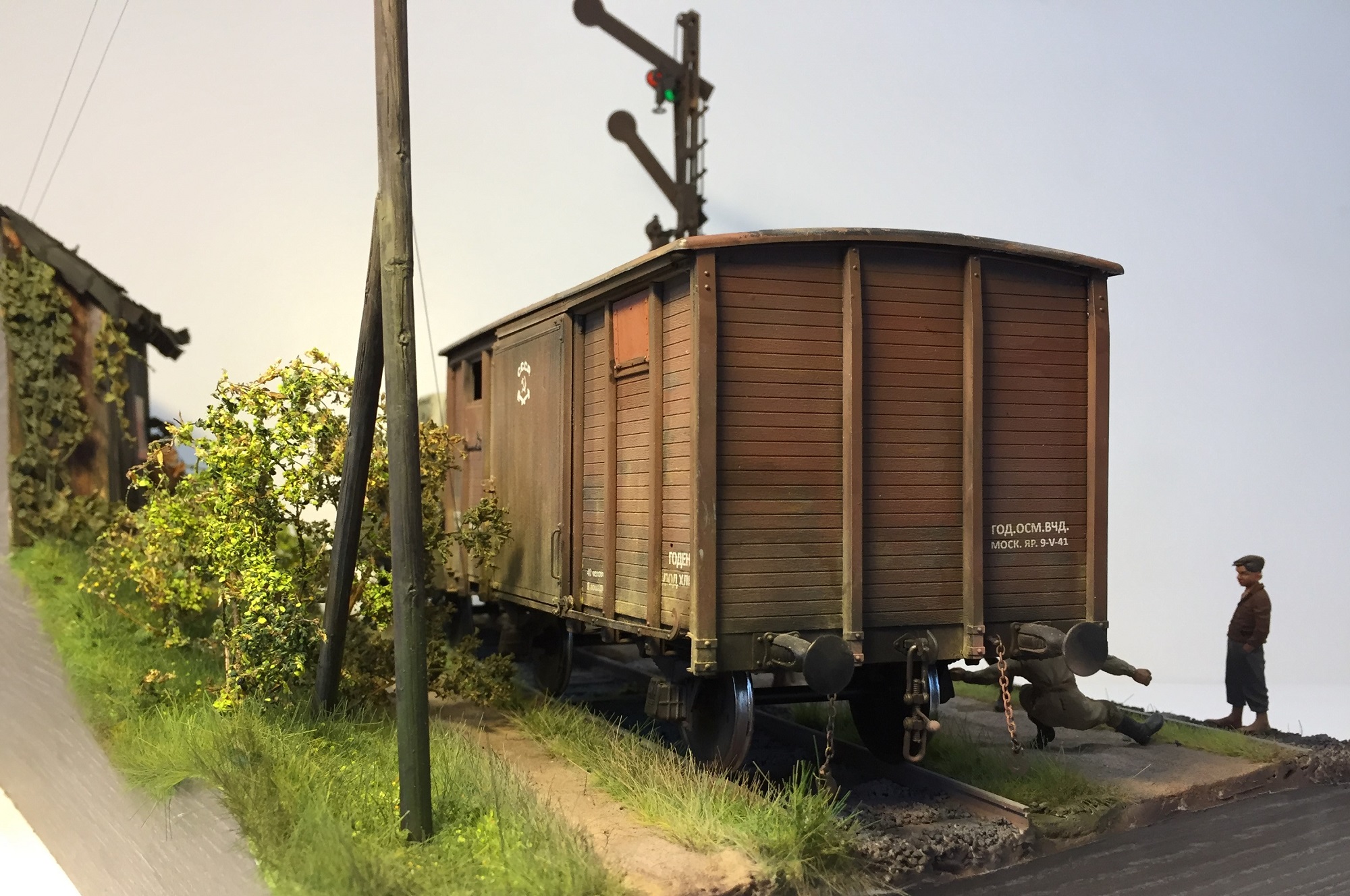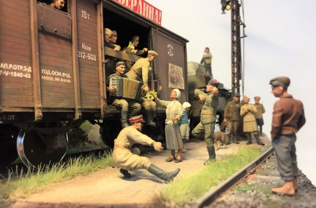 Эта диорама стала полноценной композицией благодаря шикарным дедам на лавке и солдату в маленьком окошке