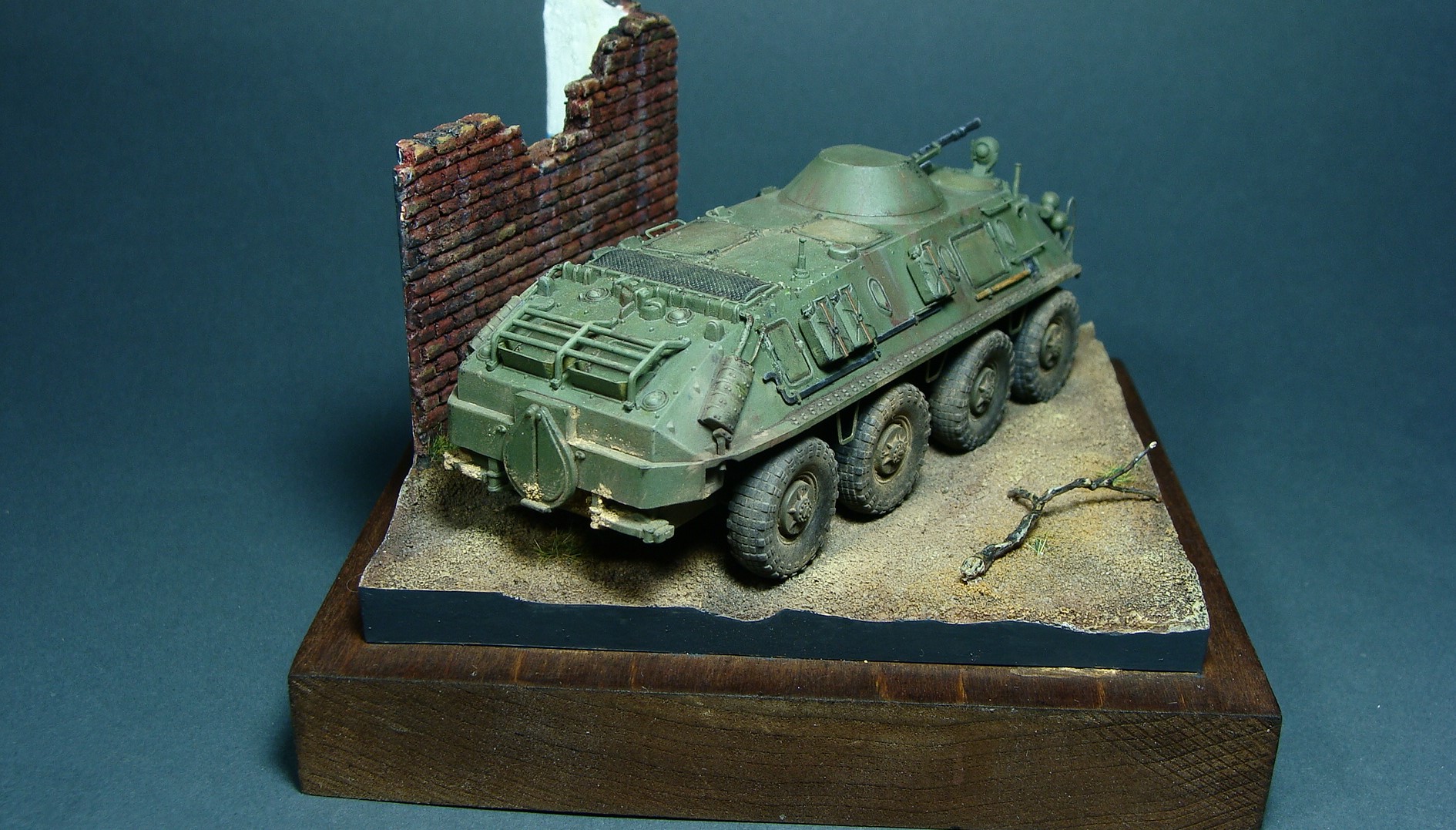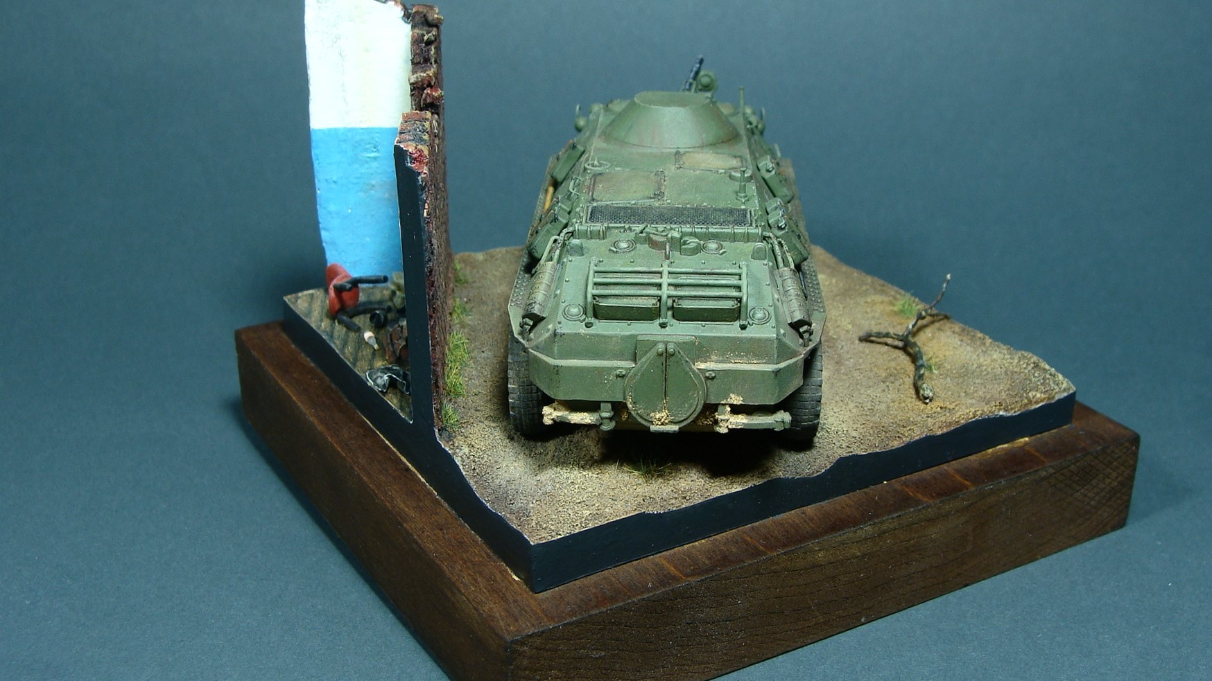 По покраске. База БТР надута высветленной тамиевской nato green, в остальном акрил и масло Сонет, МастерАкрил, акрил Пацифик 88, пастель вместо пигментов.