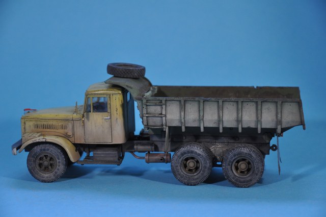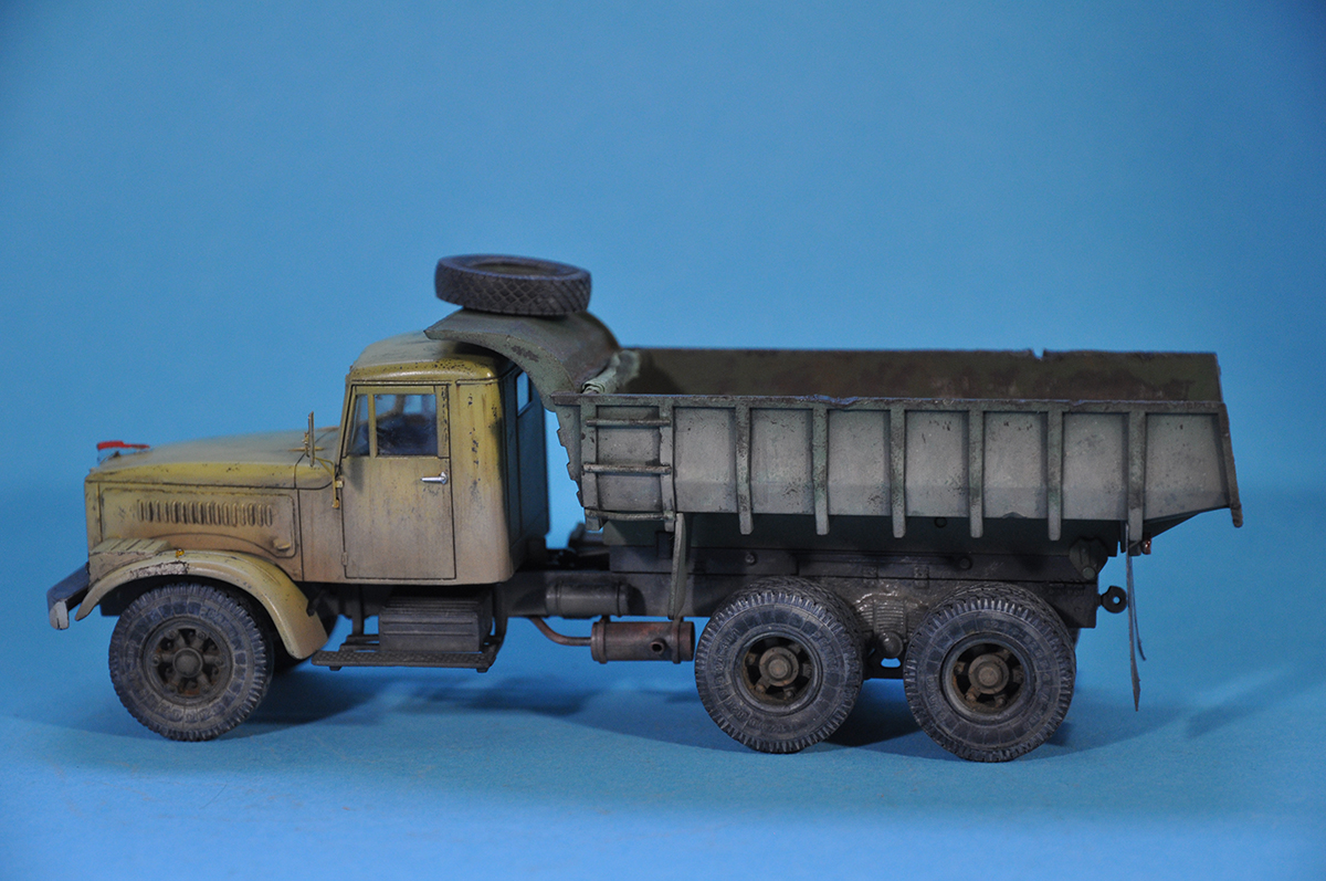 Работа хорошая, трудяга получился, небольшое замечание, будучи работая механиком-пригонял такие с завода, задних брызговиков не было (ну это уже дело хозяина, хотя мы не ставили, всё равно в карьерах отрывали а по городу не ездили) нет воздушного сигнала под левым зеркалом, ну и баки были в цвет рамы.Успехов!