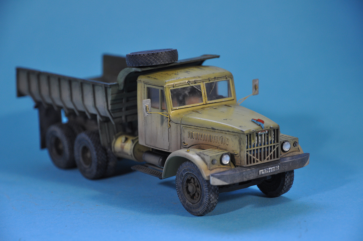 Представляю очередную работу в 43м масштабе,сделан из латуни годный флажок на капот,колеса заменены на "Харьков",добавлены задние брызговики,"запаска" на самосвальный кузов,брезент,зеркала из фототравления. Приятного просмотра)