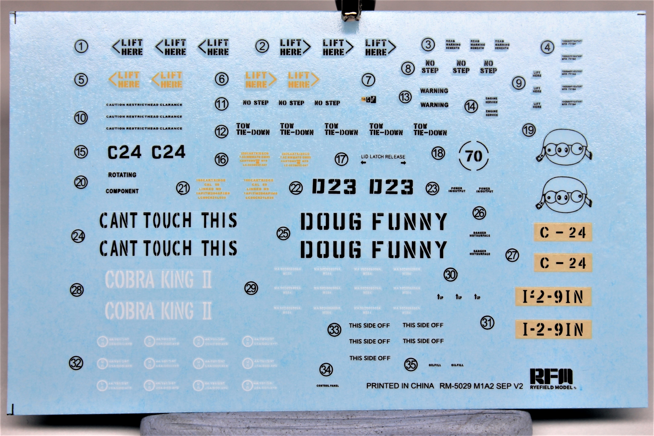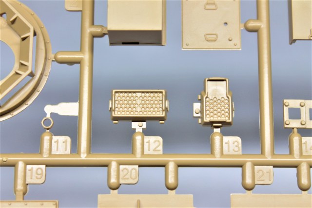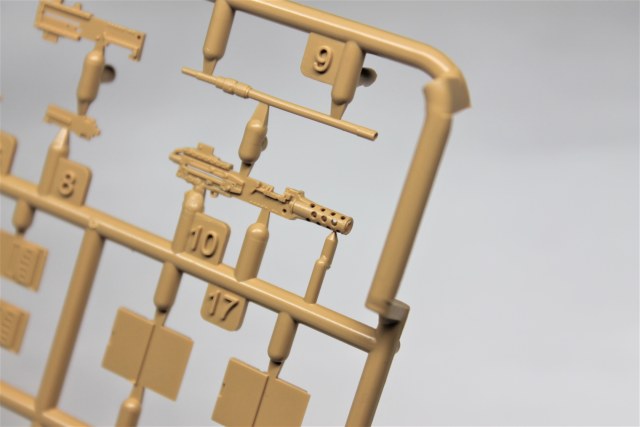 Плата травления с необходимыми решётками и прочей мелочевкой хорошо дополняют набор. На листе с декалями присутствуют несколько вариантов маркировки техники и много разных мелких надписей, в том числе на патронные ящики.
