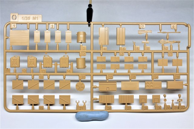 В наборе присутствуют элементы барахла, используемого танкистами: канистры для топлива; канистры для воды; разные ящики для продуктов и воды; прозрачные бутылки в большом количестве и разных форм (под стеклянные и пластиковые бутылки); патронные ящики.