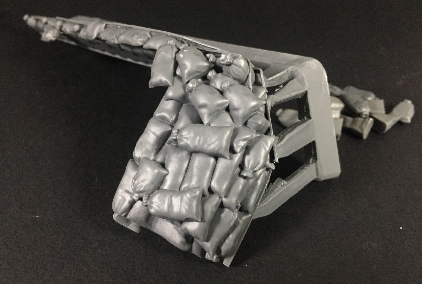 Кстати, помимо набора я сразу получил и смоляные экраны из мешков с песком. Этот набор продается отдельно и стоит дороже самого танка. Отлит он довольно хорошо, но пока не "сядет" на пластик, трудно сказать, насколько хорошее у него будет прилегание, опасаюсь щелей.