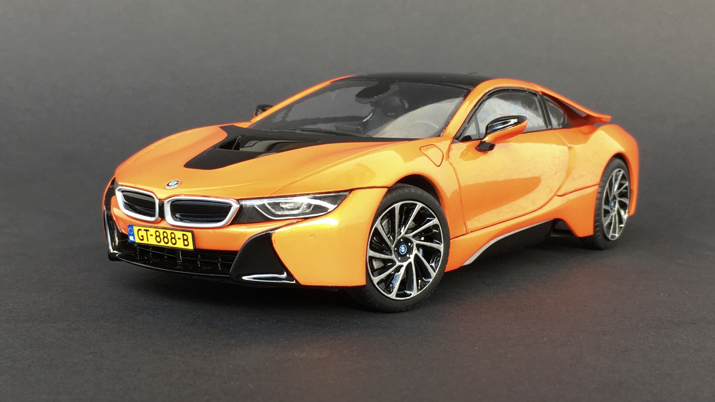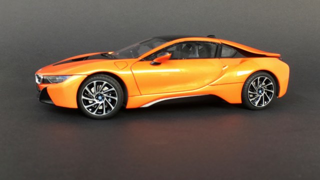 Всем здравствуйте уважаемые Коллеги. Представляю на Ваш суд свою крайнюю работу. BMW i8 от компании Revell в масштабе 1:24. Общее впечатление от набора двоякое,в общем то как и от многих наборов европейского ревелла. Детализация не плохая, сложность набора тоже на уровне, но как обычно средняя стыковка,облой, утяжены и недоливы, не совсем адекватное остекление. В общем многие моделисты в курсе. Основной цвет был выбран от компании Splash Paints, остальное краски Tamiya. Из дополнений использовал диски от компании Plamoz, пачка сигарет и зажигалка были взяты из дополнений от компании Fujimi, стакан с кофе (если это похоже) сделал сам. Недочеты есть,даже спорить не буду. На Ваш суд. С уважением!