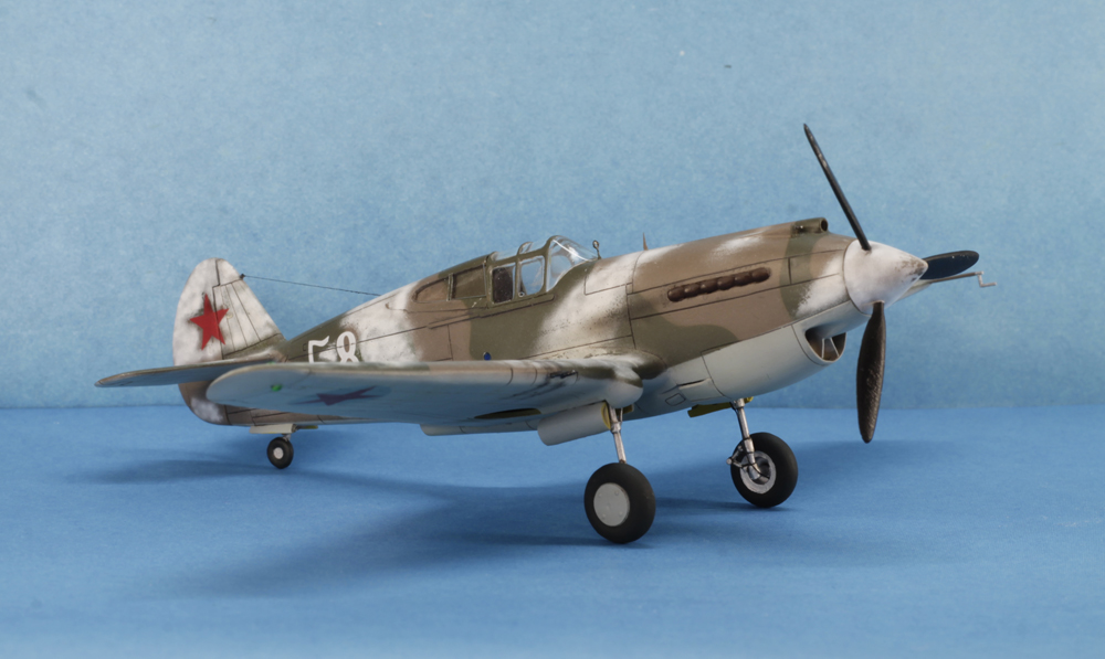 - Автор выбрал британскую схему камуфляжа, т.е. изобразил Tomahawk Mk-IIb, из первой партии в 195 машин (из которых 23шт были Mk-I, а остальные Mk-IIb) поставленных в СССР.