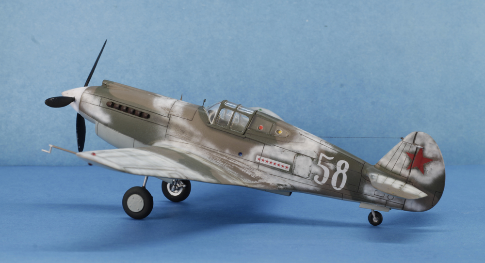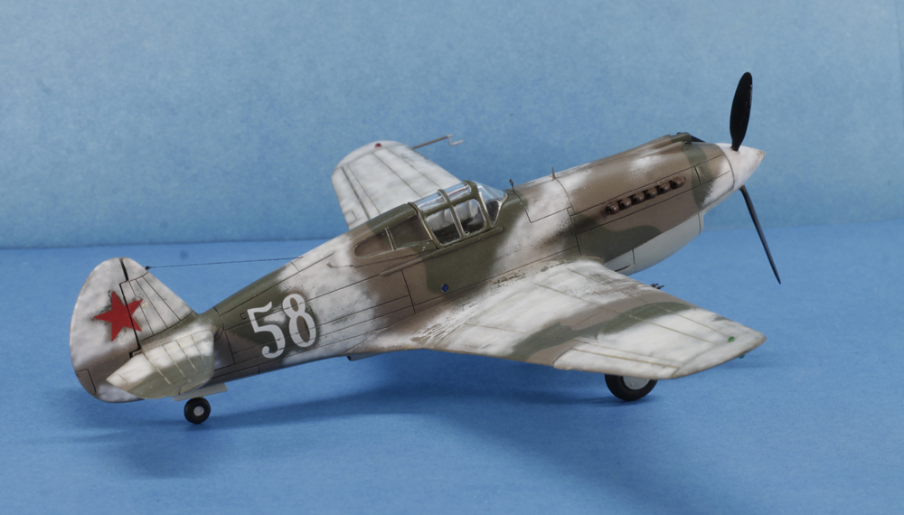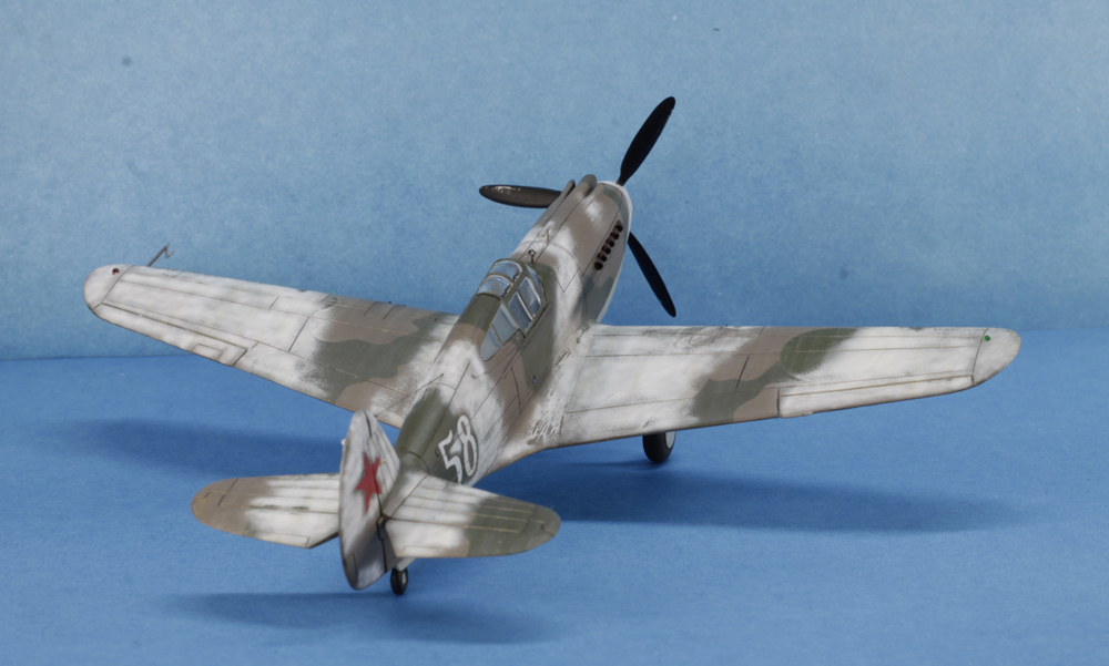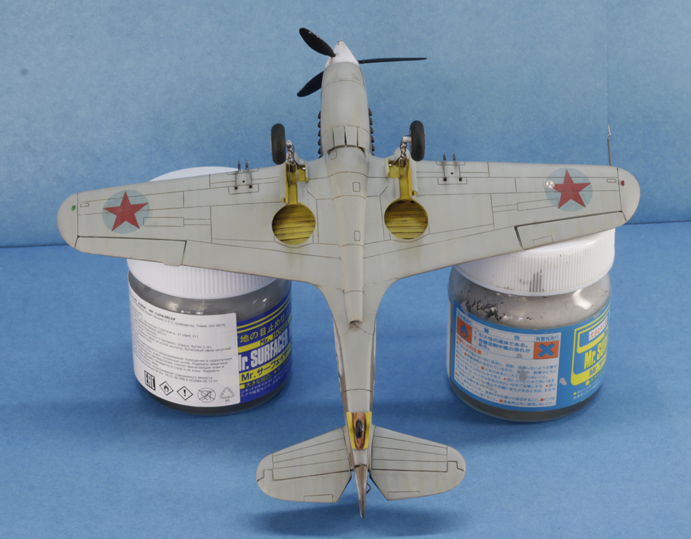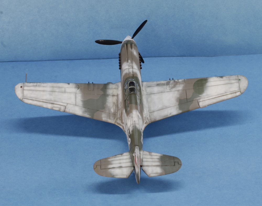 Элероны снизу (стыки) смотрятся грубо - лучше было бы зашпатлевать швы полностью и перешить. Нижняя кромка козырька фонаря серебрится, да и сам стык выделяется. Клеили фонарь уже после покраски?