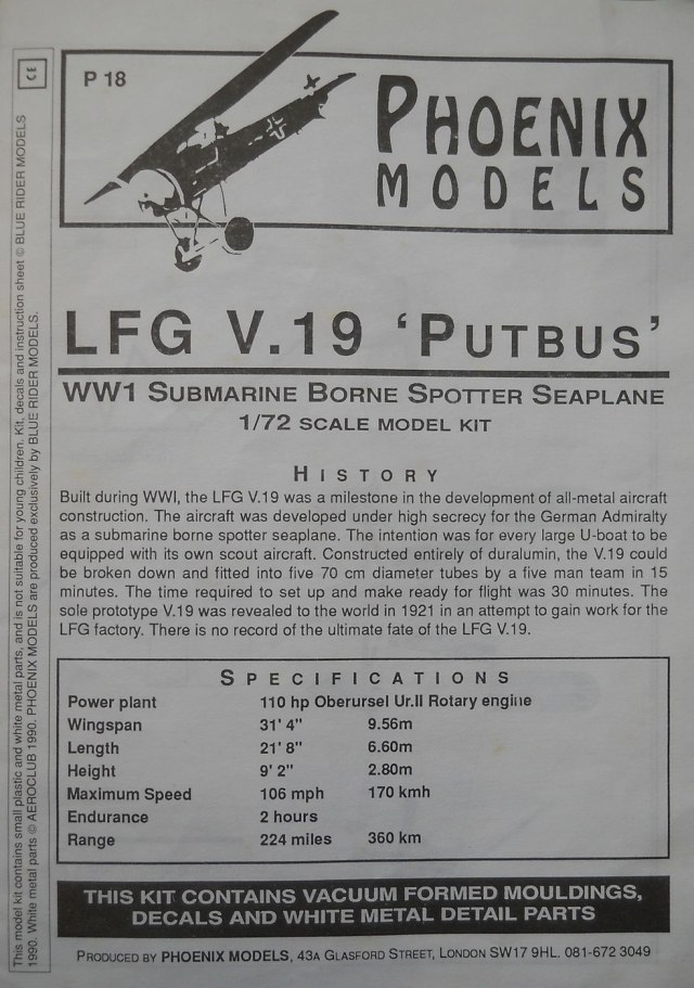 Самолет-разведчик для подводной лодки LFG (Roland) V.19 Putbus был создан в 1918 году. Он проходил испытания, но построить три заказанных серийных экземпляра уже не успели - война закончилась. Подробнее об этом самолёте можно прочитать тут.