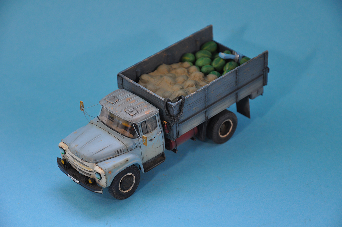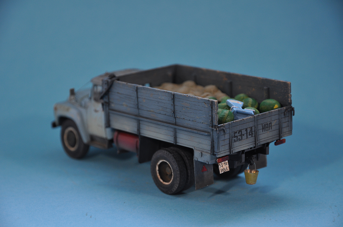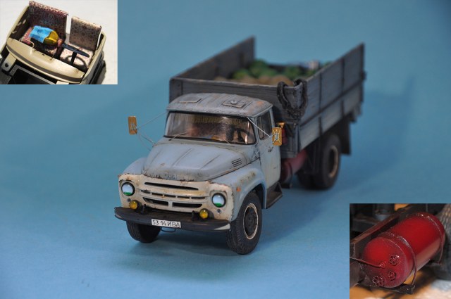 ЗиЛ-138 из кита ЗиЛ-130,по сути добавлено ГБО,заменены зеркала,резина,нарастил борта и добавил рваный баллон (на заплатки),заменена оптика,добавлен огнетушитель,ковры на сидухи,ведерко,в кузов сладких ягод и "Тюмень" (при езде им конечно настанет кирдык). Приятного просмотра).