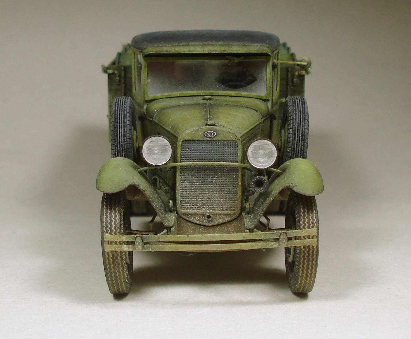 А вот запаски на борта кабины Вы зря поставили. На подавляющем количестве фото ГАЗ-ААА две запаски лежат на раме в нишах под кузовом.