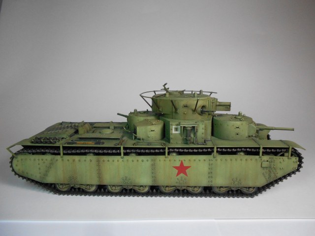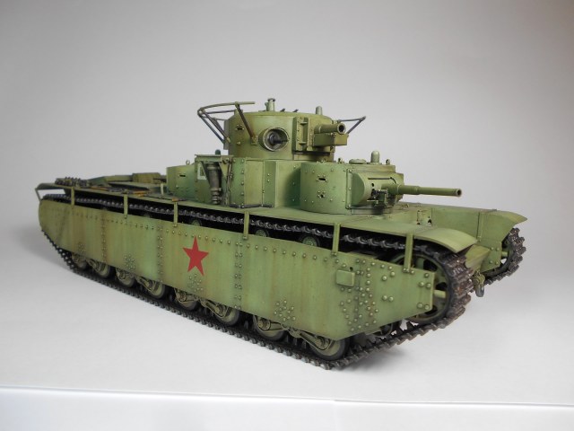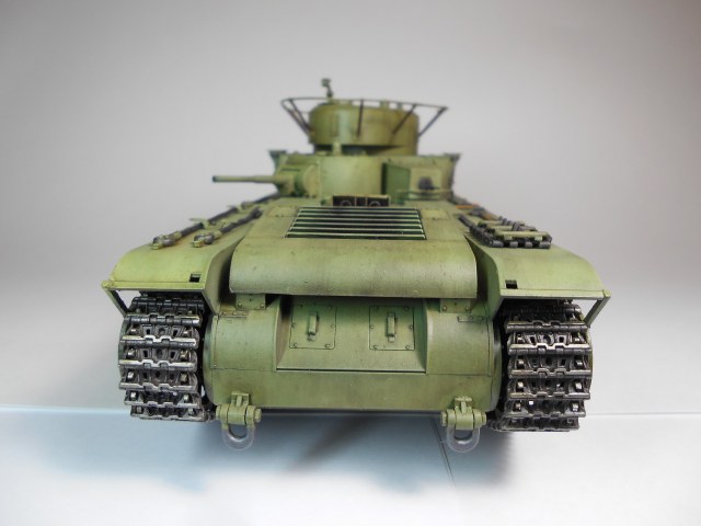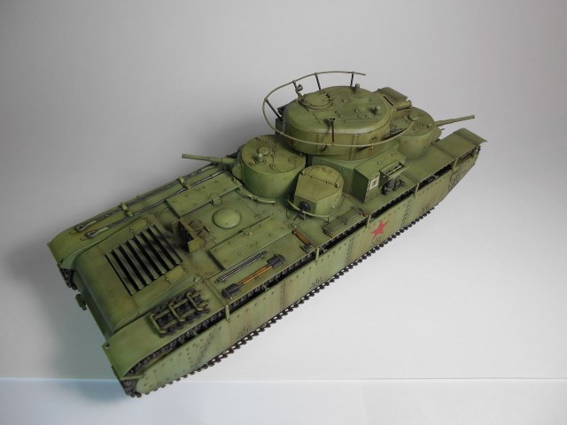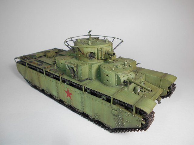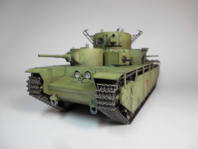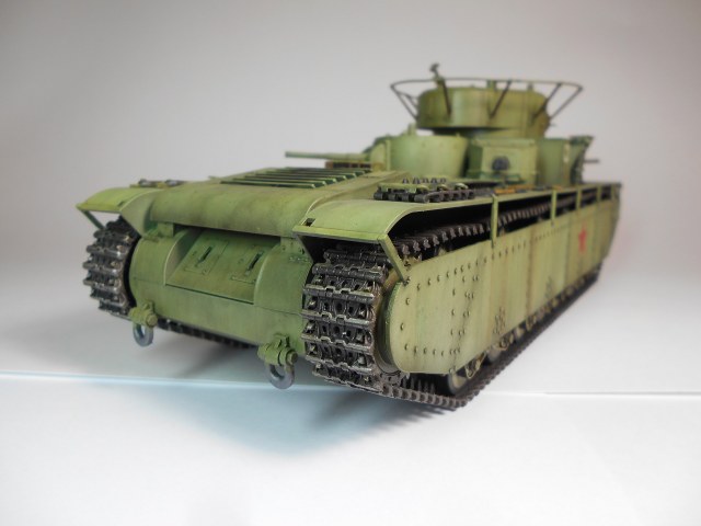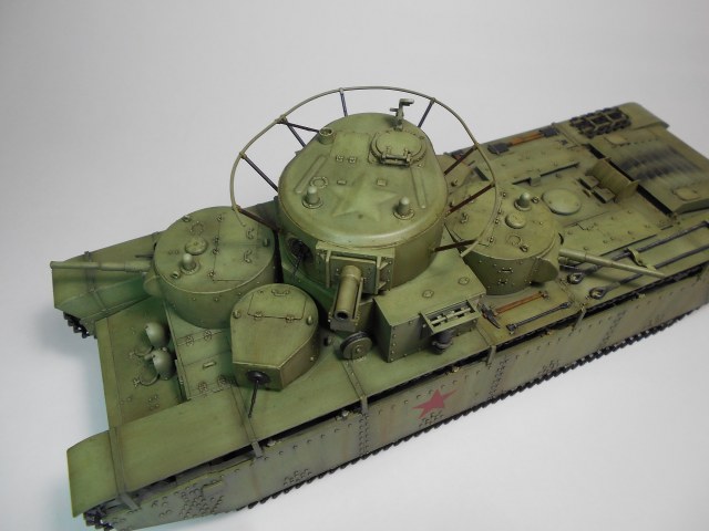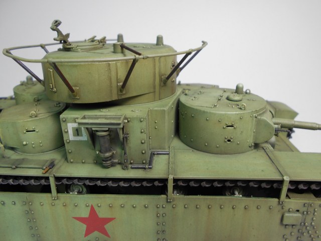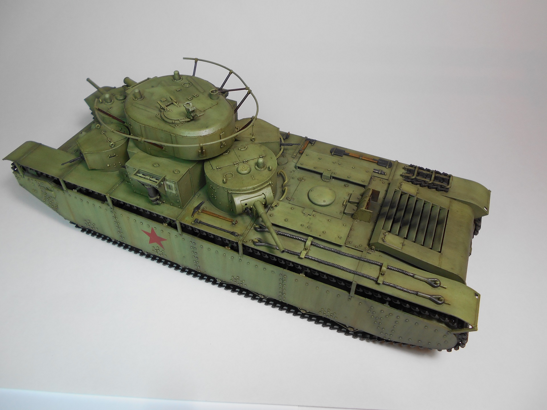 Модель изначально планировал сделать чистую, вижу данную машину только в таком виде,еще при окраске данной модели было открытием то, что стойки антенны у Т-35 Были выполнены из текстолита и покрыты бакелитовым лаком, попытался это эмитировать.