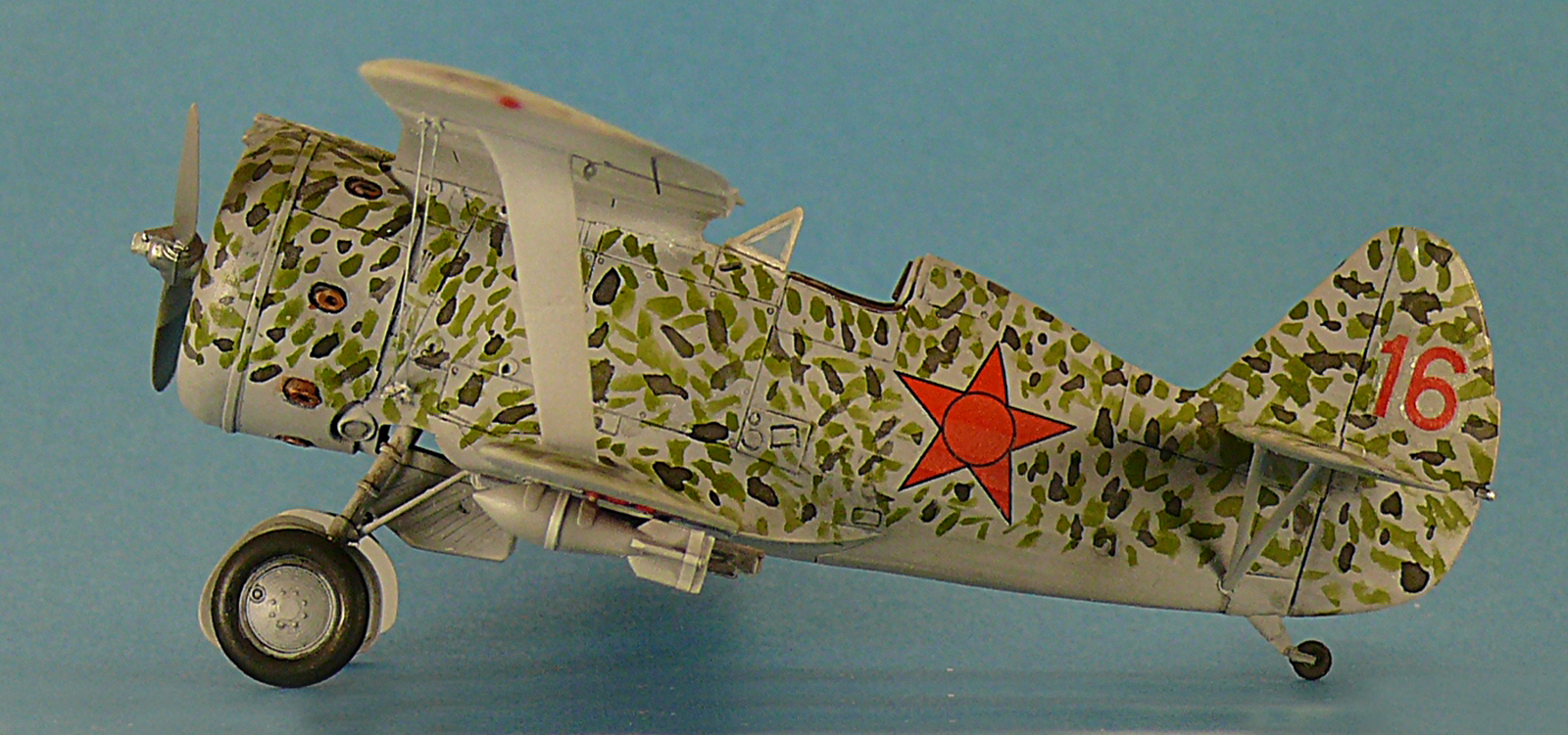 Мне нравится! И камуфляж достойный, хотя наверняка с ним пришлось попотеть. На таком маленькой модели удалось воспроизвести непростой такой рисунок. "Чайка" удалась. На предпоследнем фото, левый И-153, кажется тоже "шестнадцатый", имеет окраску нижних поверхностей крыльев другим цветом. Наверняка голубым. И его сосед справа тоже. Не стали так делать?