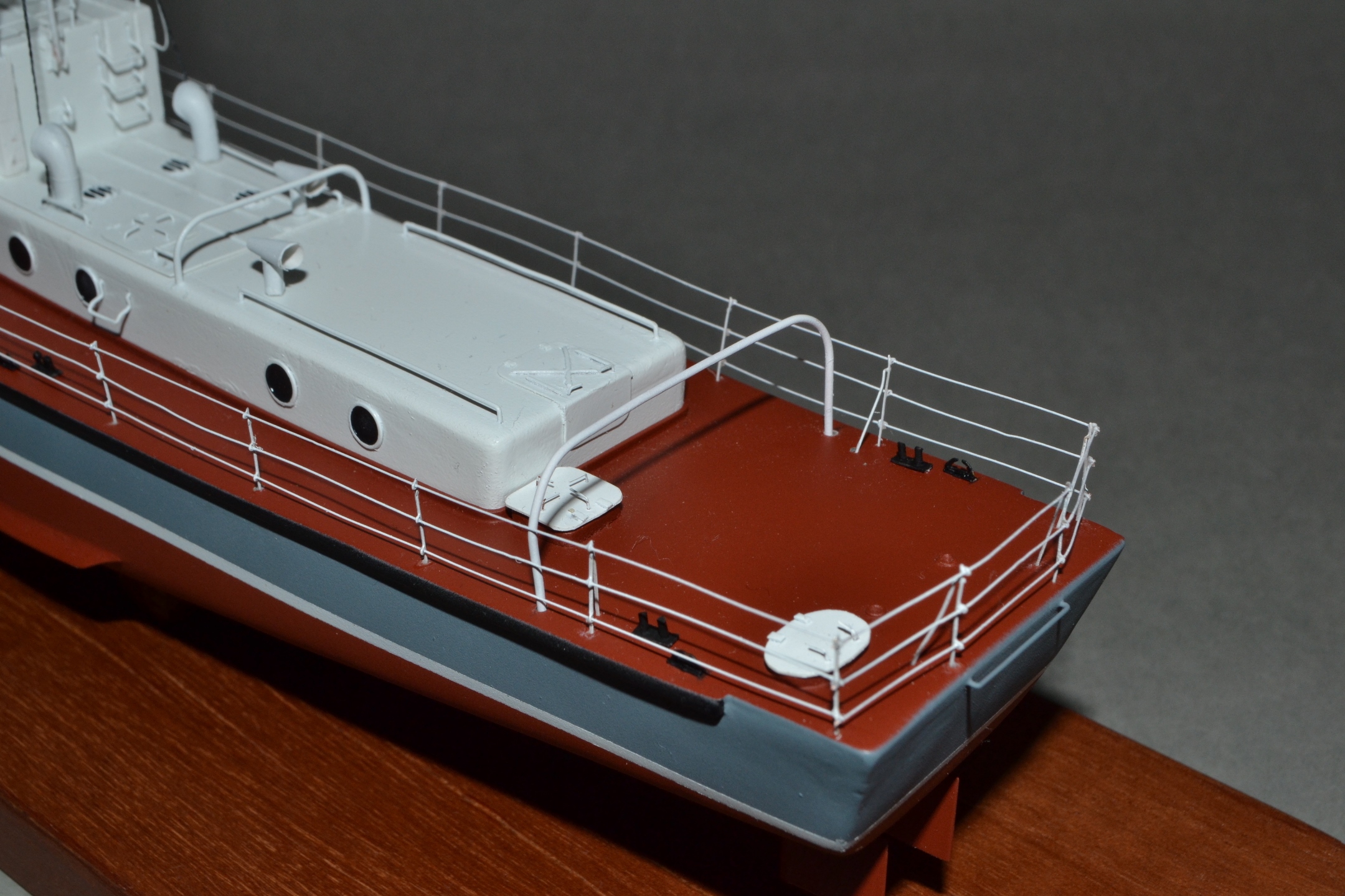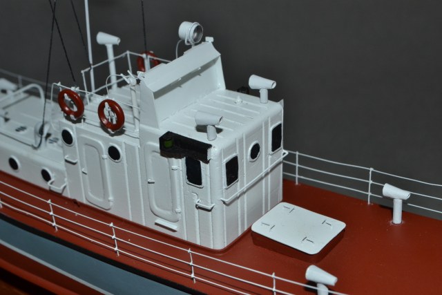 Понравилось! За САМОДЕЛ отдельный респект. Немного "макетно", но в аккуратности не откажешь. Смущает белый цвет настила мостика и цвет внутренних поверхностей бортовых огней. Проголосую за Галерею.