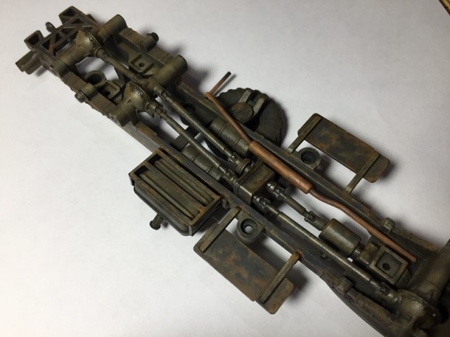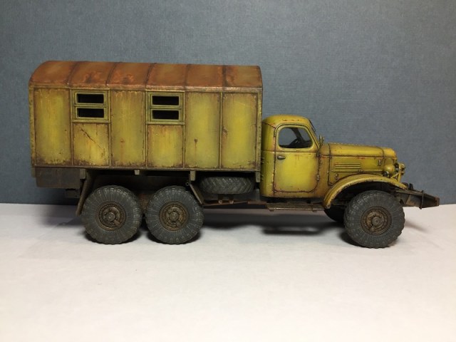 Страшно живучая машина. Он и сейчас поедет. Патрубки, резинки и масло поменять. Модель классная и ушатана здорово. Единственное, что я бы КУНГ и саму машину разными цветами красил (да и такое вполне имеет место быть, когда машину красят какие-нибудь коммунальщики), а решетки как-будто из толстенной арматуры сварены. Но тут уж это никак не к автору.