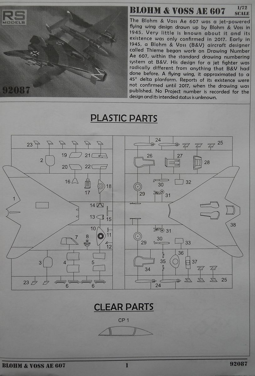 Модель от RS Models из пластика в масштабе 1/72 (номер по каталогу 92087). Картонная коробка с боковым открытием. Типичное литьё ЛНД для этой фирмы. Внутренний крой относительно аккуратный. Неплохая деталировка, но качество мелких деталей традиционно неважное. Фонарь смотрится хорошо. Декаль на четыре гипотетических варианта самолёта. Инструкция по сборке и окраске вполне информативна и наглядна.