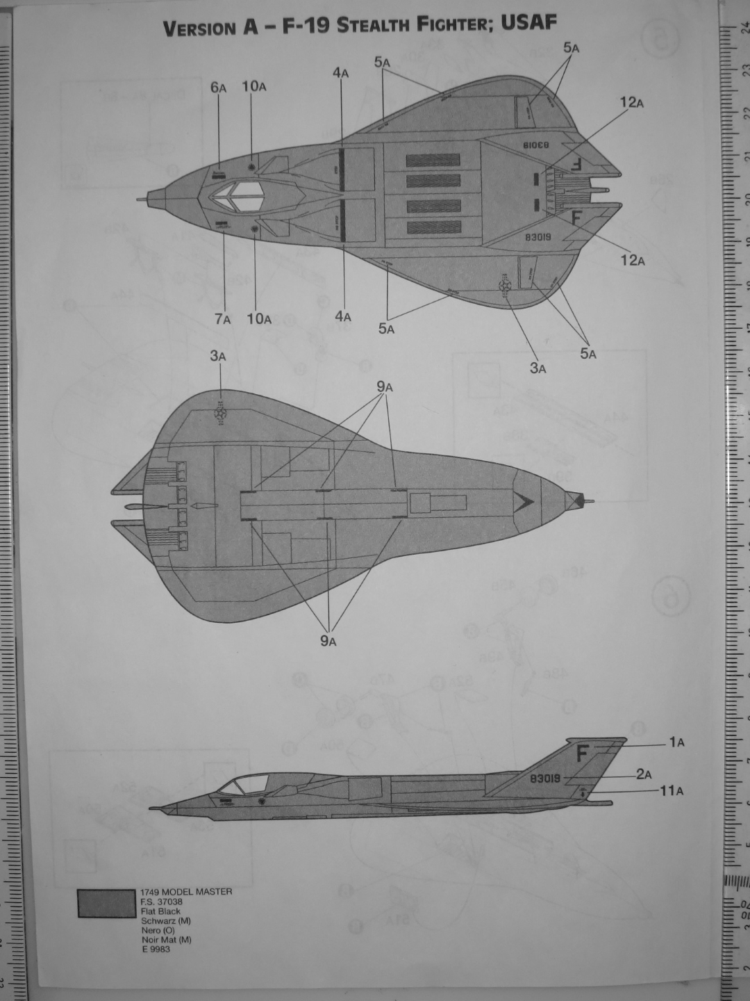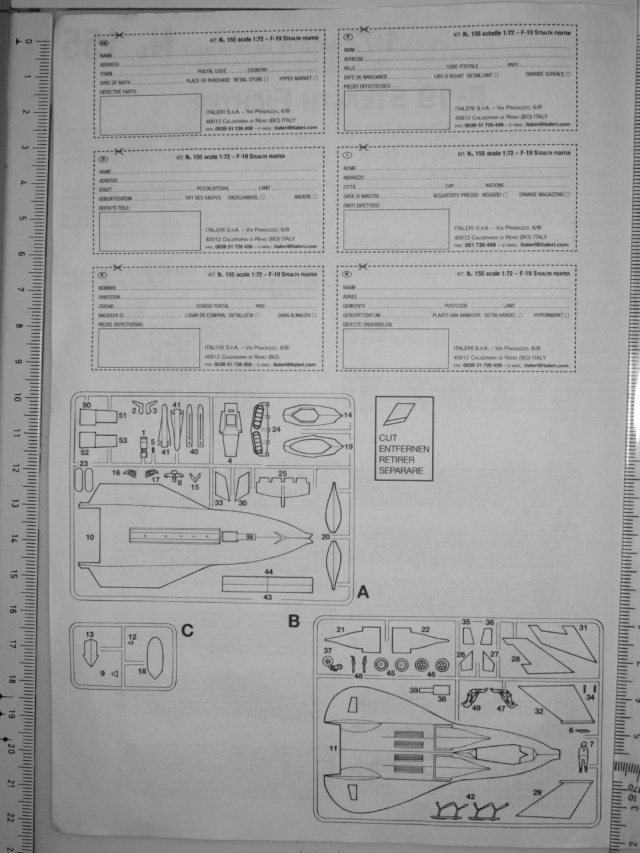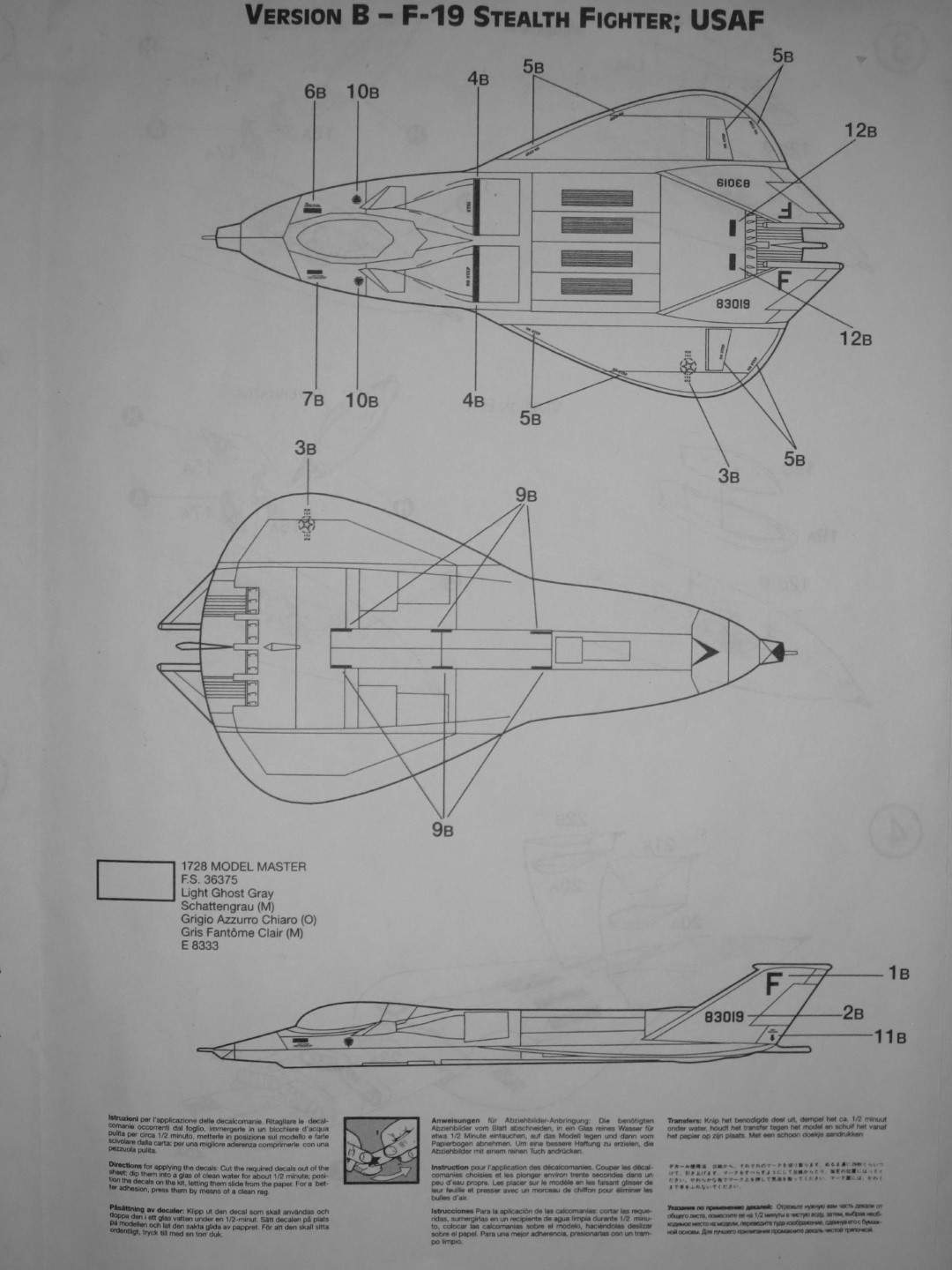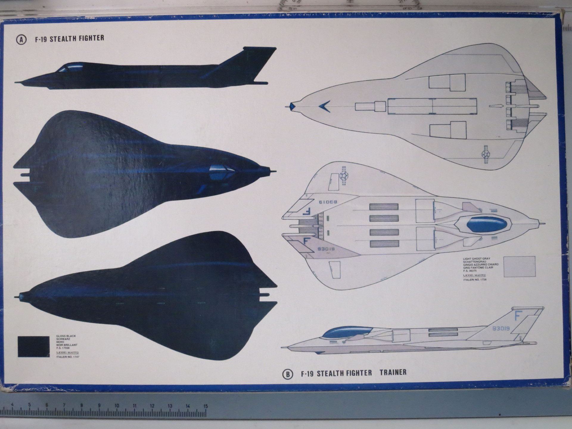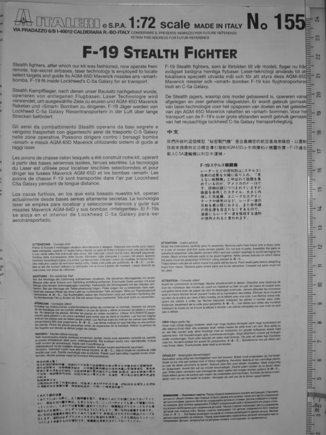 F-19 в 1/144 выпускался и Revell, но конструкция чуть-чуть отличается от italeri. Пожалуй, самый оригинальный F-19 был у Monogram, но вот пощупать ту содель так пока и не удалось.
