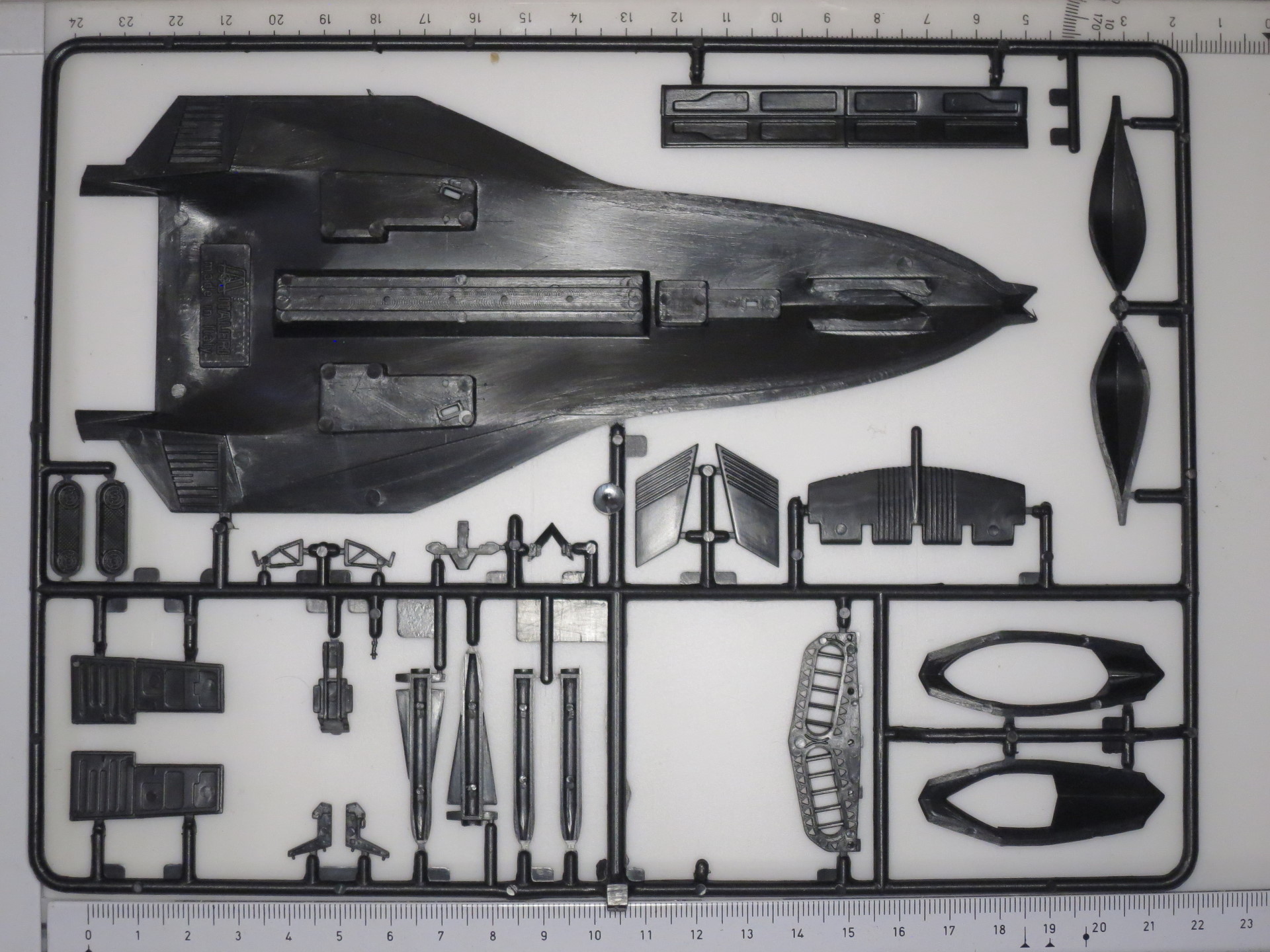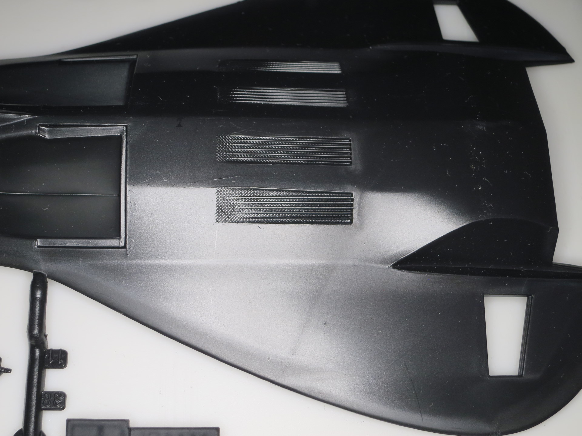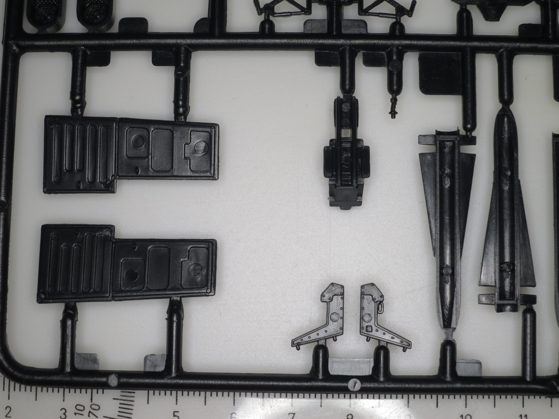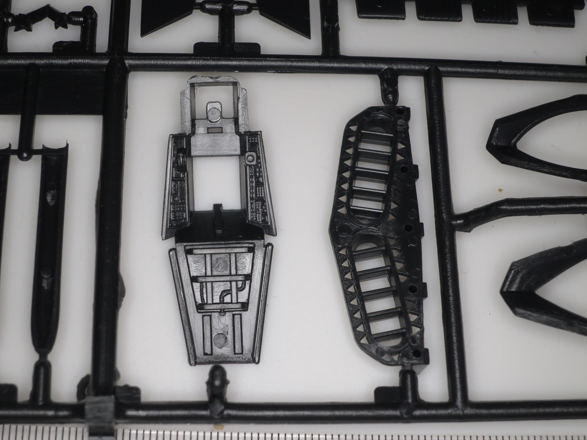 Модель из черного пластика, прямо так и подталкивает к выбору соответствующего варианта окраски. Литье мне понравилось, без заметных утяжин и с очень небольшим количеством облоя. На собираемость не проверял, но особо больших проблем не ожидается.