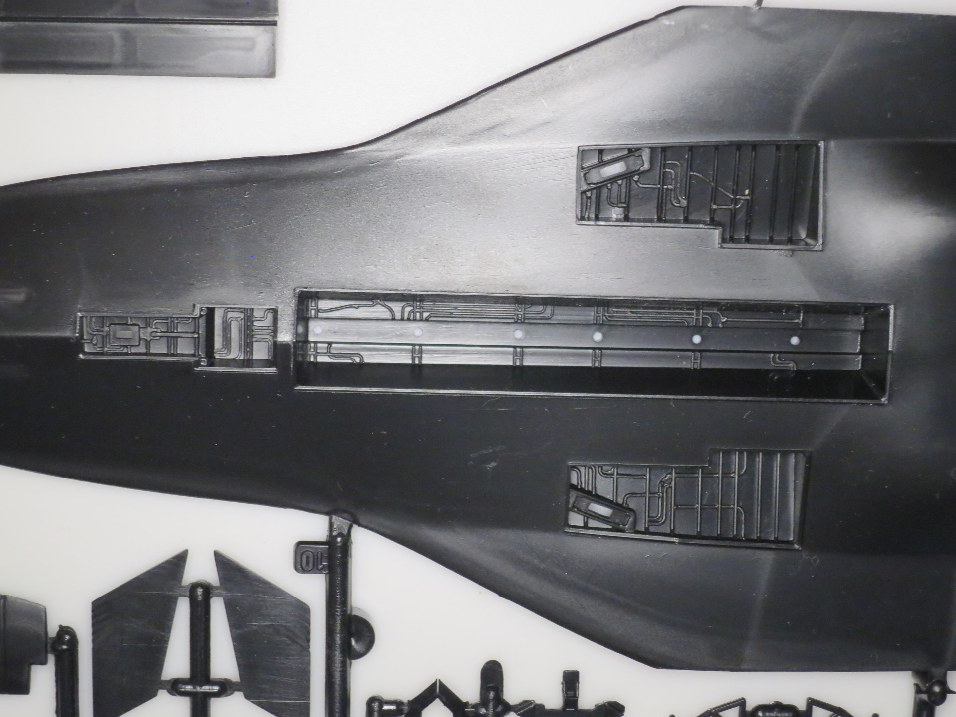 Все створки даны в убранной конфигурации и для того, чтобы показать все богатство ниш и отсеков, створки необходимо будет разрезать. Опять же много общего с MiG-37.