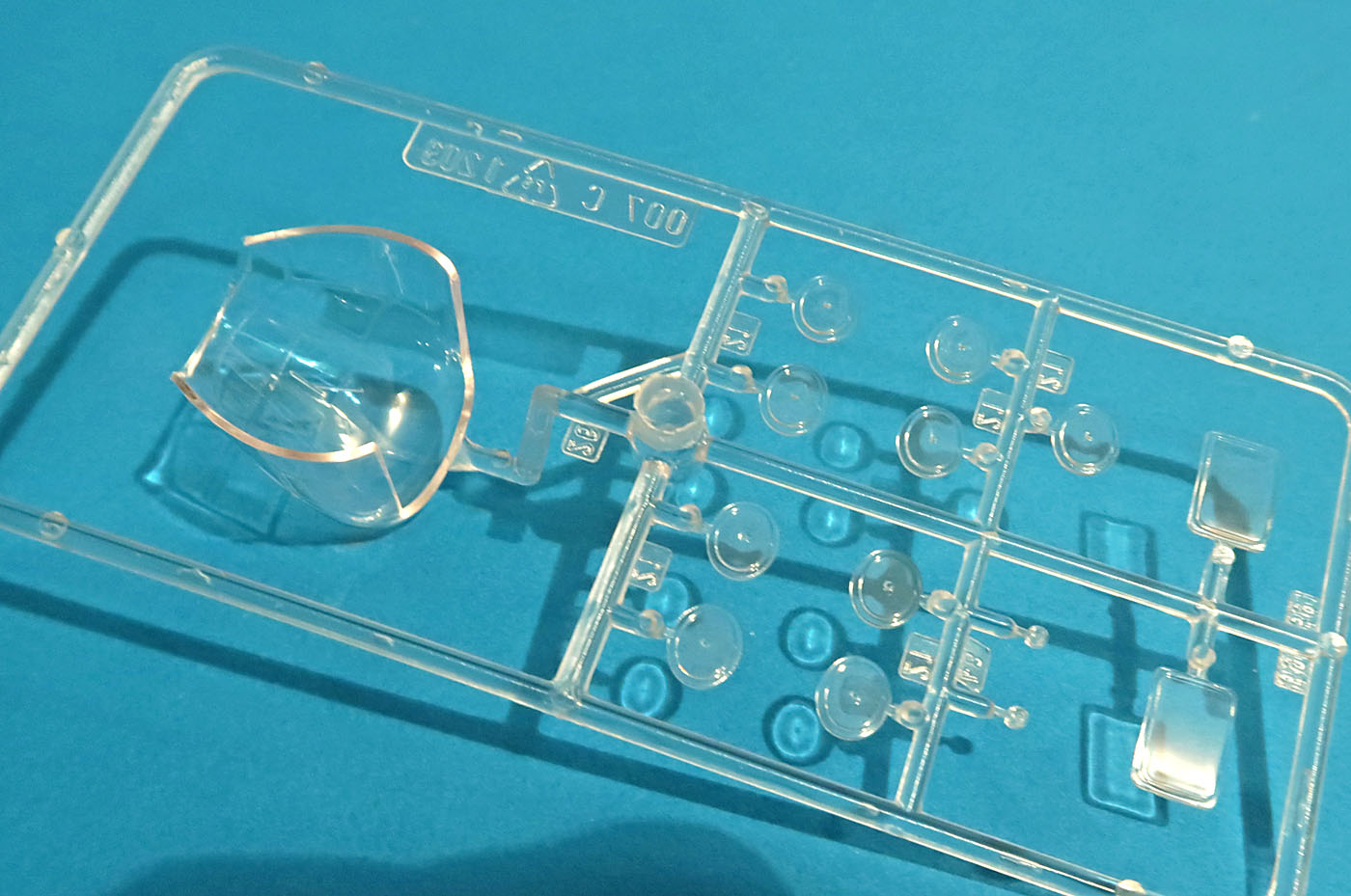 Внутри 2 здоровенных литника, один прозрачный, декаль и инструкция. (кусочек синтетической дряни поминать даже не хочется;))