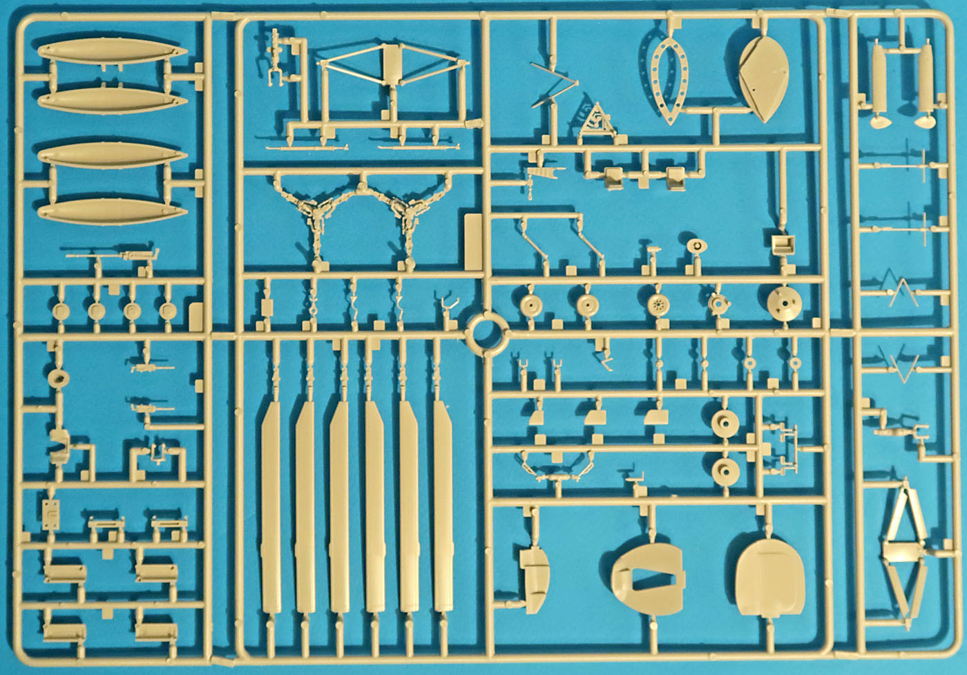 Втулки винтов весьма деталированы. Колесики простенькие, стойки шасси ажурные. Лопасти отлиты с выраженным провисом, баки с могучими стяжками.