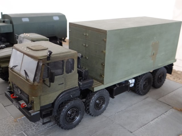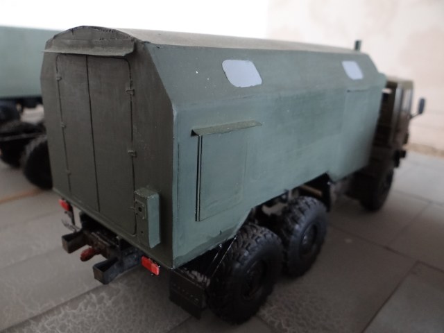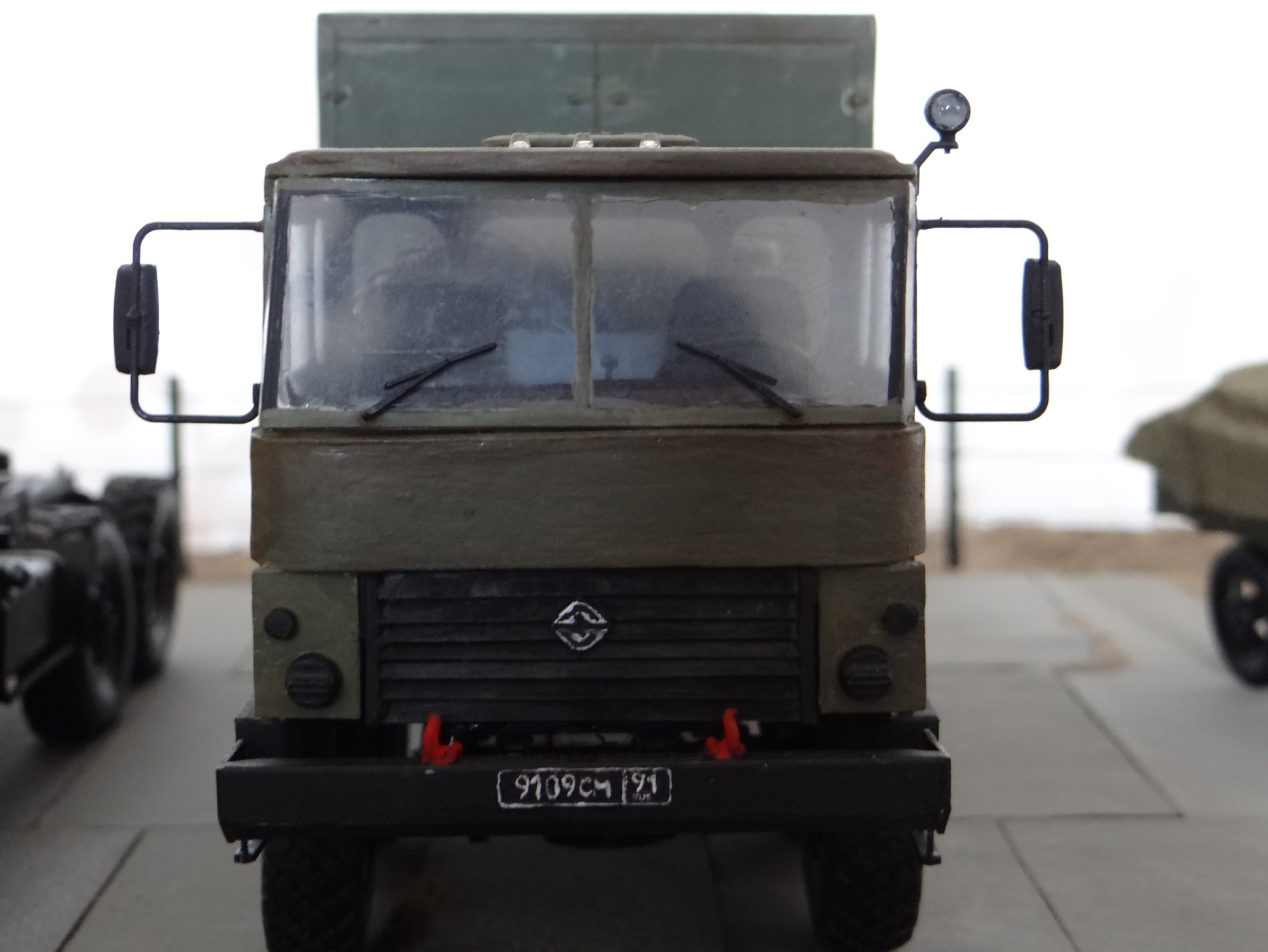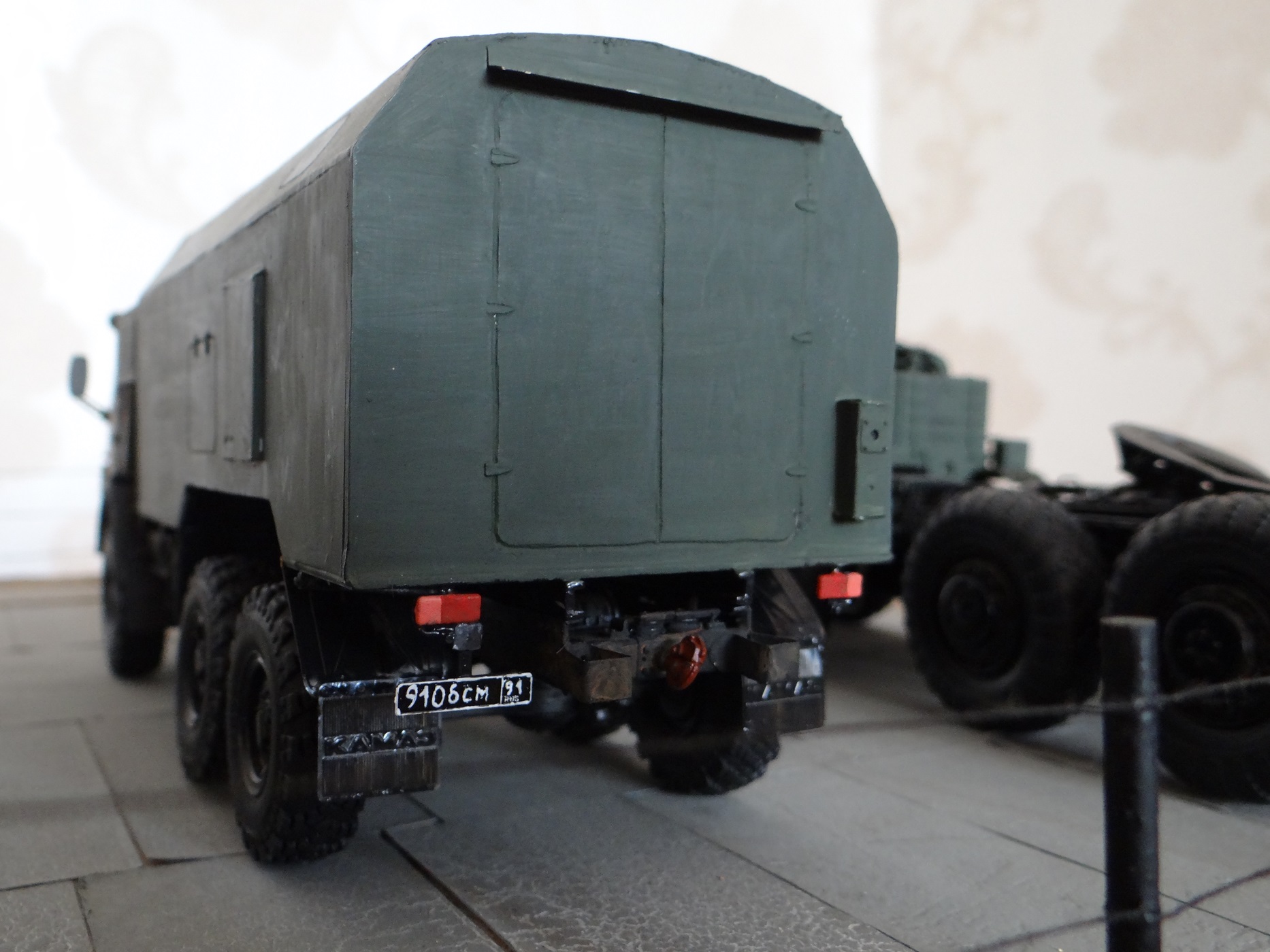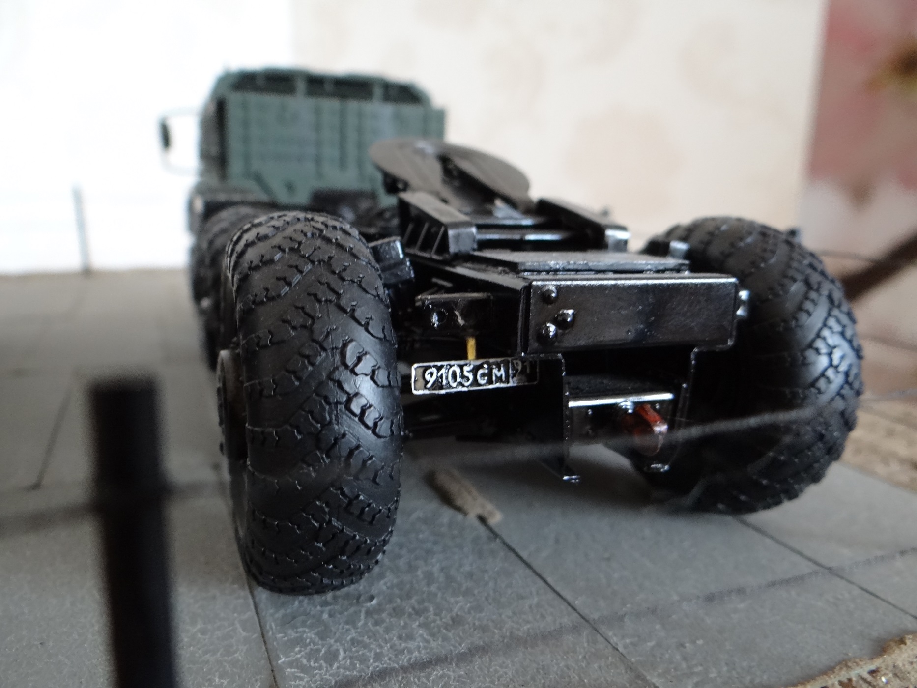 Приветсвую, моделисты! Представляю небольшую диораму стоянки автомобильной техники в 1/35 масштабе. МАЗ-537 – трумпетер без доработок, КАМАЗ-43101 – ICM, фототравление – микродизайн, кунг – самодел, тамиевский пластик + картон, седельный тягач Урал-44202 переделан из модели от звезды, само седельное устройство – самодел из пробки от бутылки, колеса смола. И самое главное – четырехосный тягач Урал-532361, шасси – глубокая модернизация урала звездовского, удлинил раму, поставил дополнительный мост, сделал новое рулевое управление на две передние оси, кабина полностью самодел, пластик и картон, ну и сам кузов тоже пластик от тамии. Пропорции и размеры соблюдены. Один комплект фототравления от микродизайна на две машины) Основание – пенопласт, плиты – картон, забор – остатки литников и нить. Покраска акрилом Тамия, аркан. Смывка - тамия, пигменты - мастерпигмент. Есть небольшие недоделки и неточности! По покраске сам прогнозирую оценку не выше удовлетворительно, красил все кистью, без применения аэрографа.