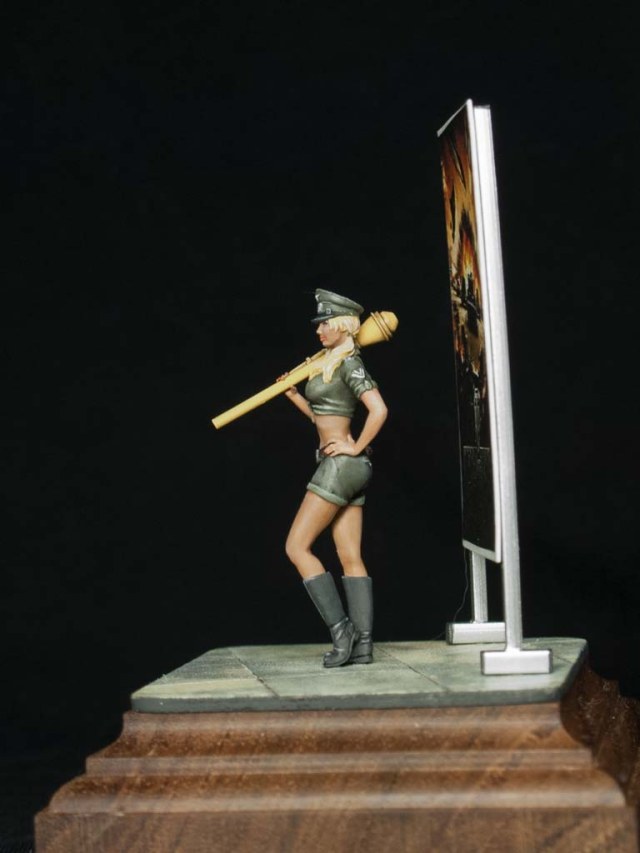 С росписью пришлось помучиться, так как пропорции у девицы весьма непривычные - ростом она как обычная фигурка в 35 масштабе, но лицо и все детали как у 48 масштаба. В итоге с горечью приходится осознавать тот факт, что лучше всего у меня получился пол)))
