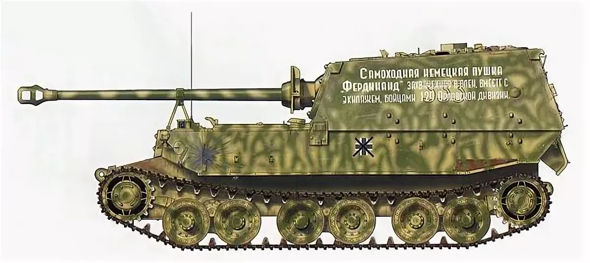 Попытался воспроизвести "Фердинанд" № 333 из состава 3-й роты 653-го батальона тяжёлых истребителей танков. Июль 1943 года. Эта машина была захвачена вместе с экипажем бойцами 129-й стрелковой дивизии Красной Армии в июле 1943 года.