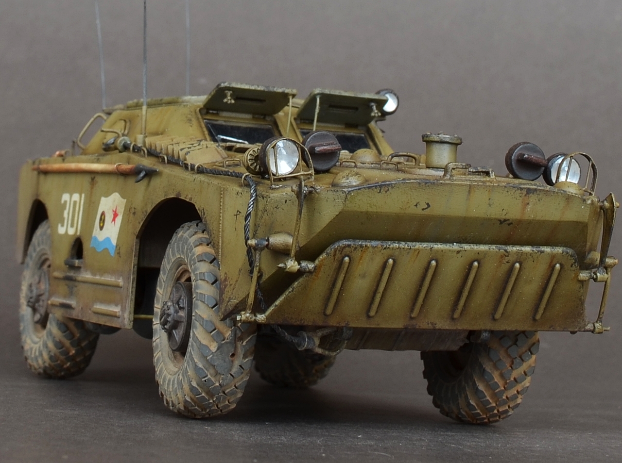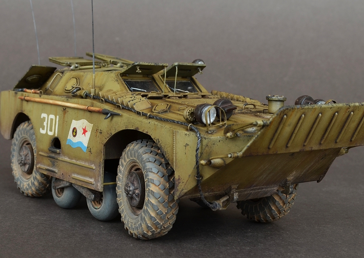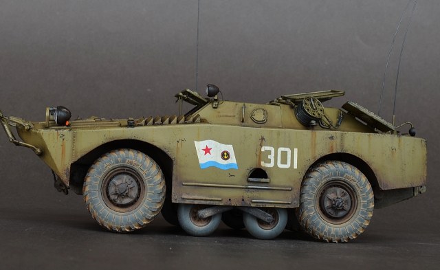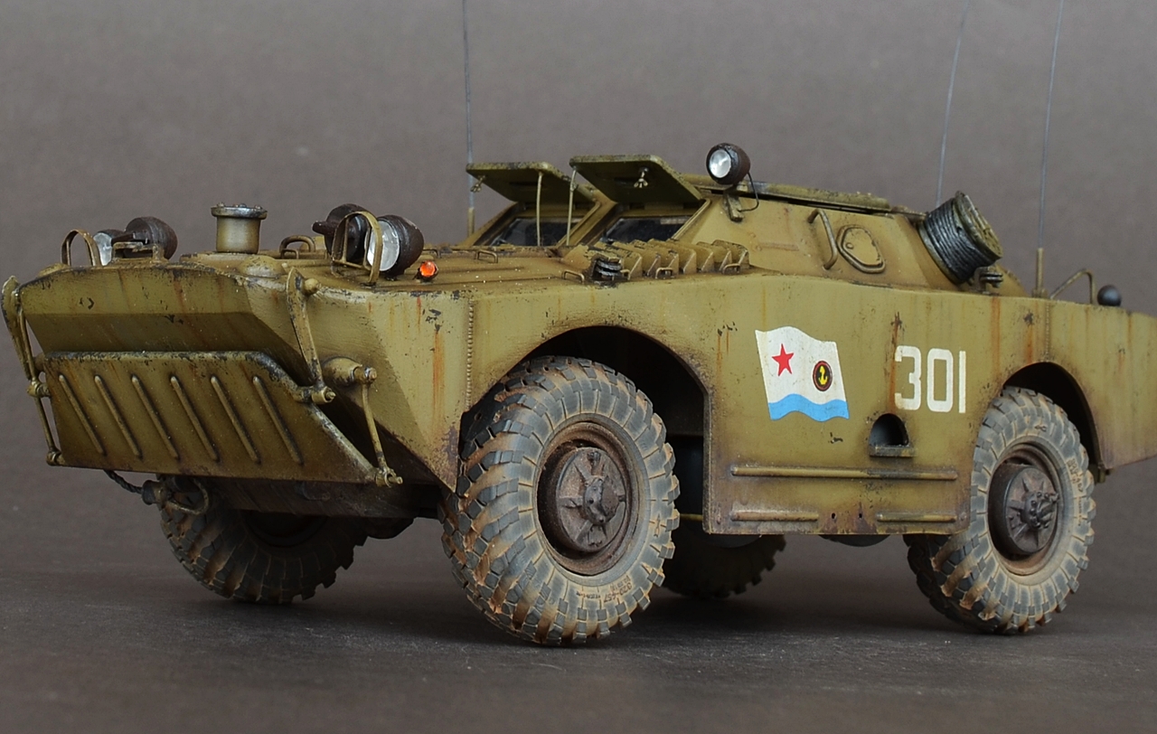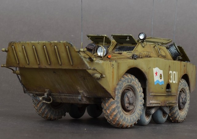 - В данной модели сделал колеса вращающимися а передние поворачиваются.Люки открываются,волнобойный щит поднимается.Шины заменил на МиниАрм(смоляная копия),диски родные.Антена тянутый литник.