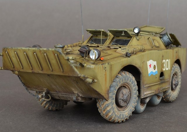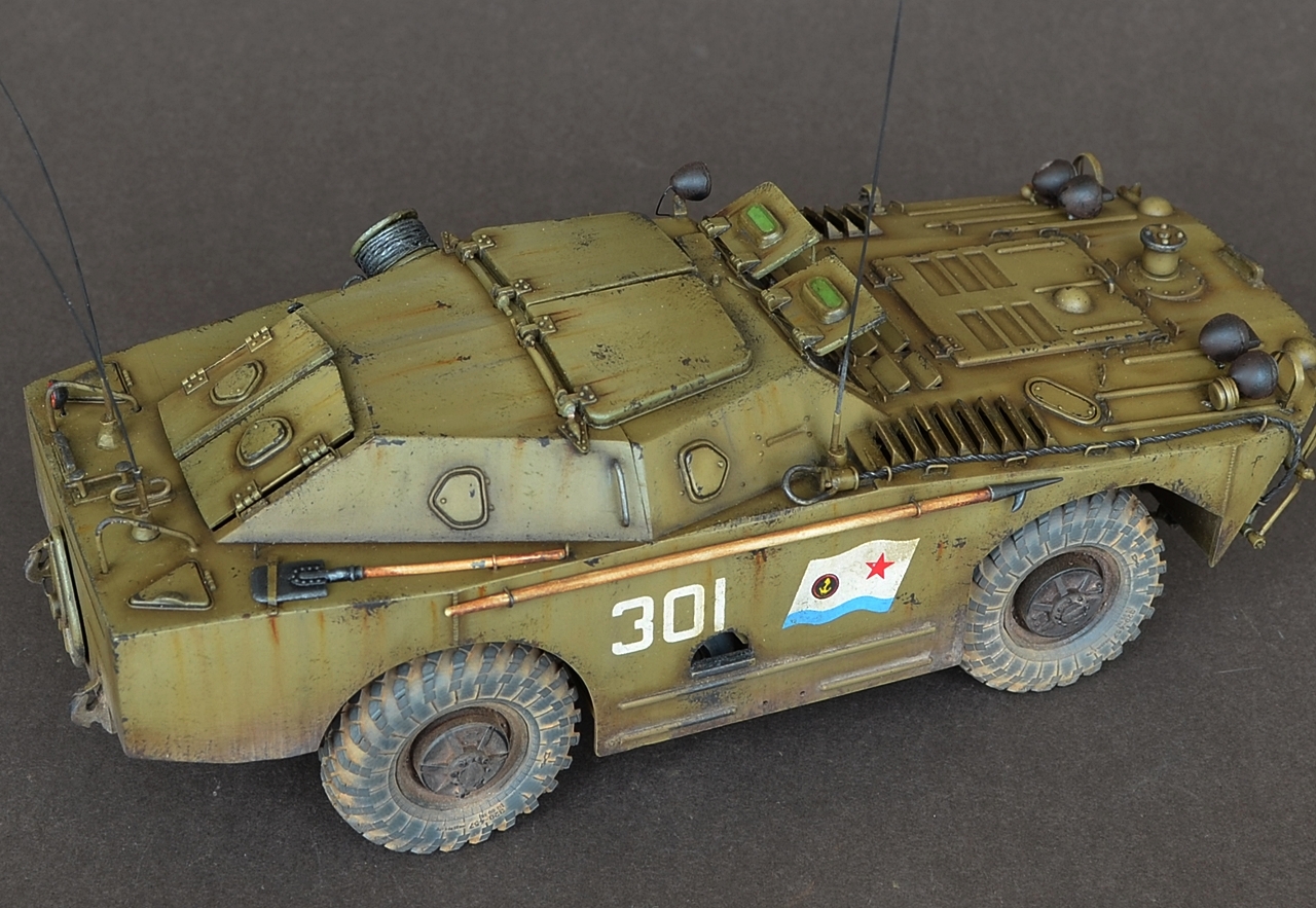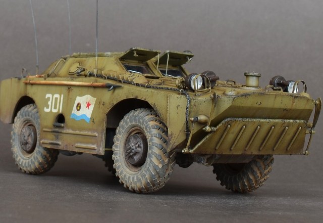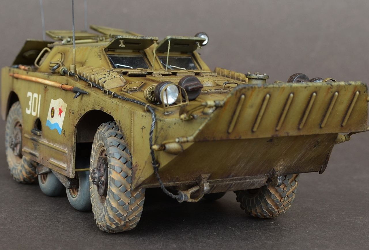 - В данной модели сделал колеса вращающимися а передние поворачиваются.Люки открываются,волнобойный щит поднимается.Шины заменил на МиниАрм(смоляная копия),диски родные.Антена тянутый литник.