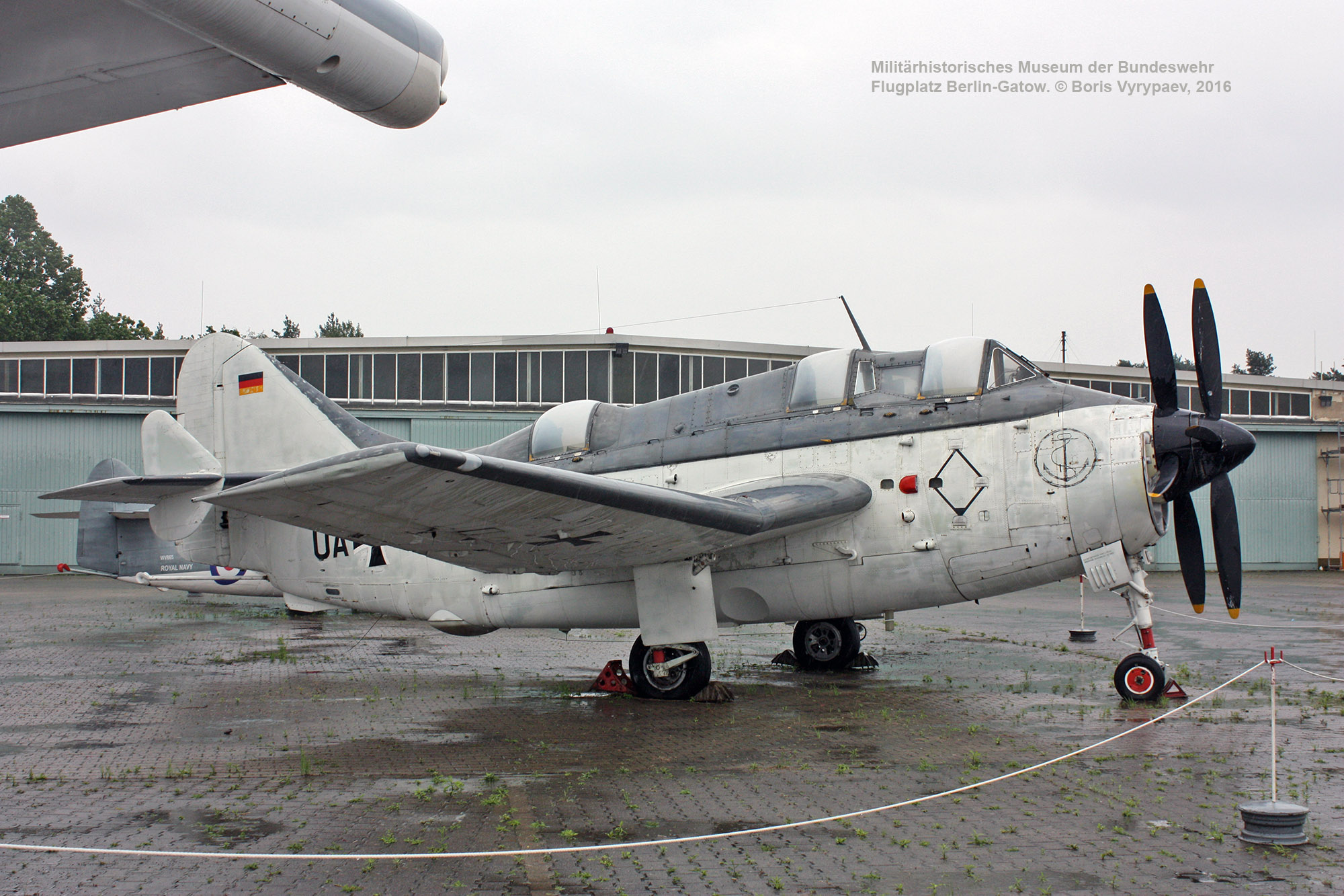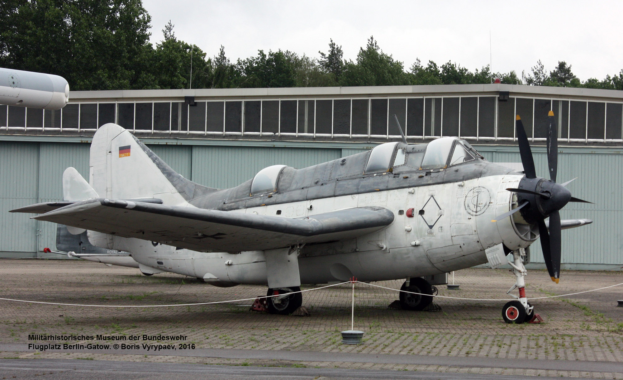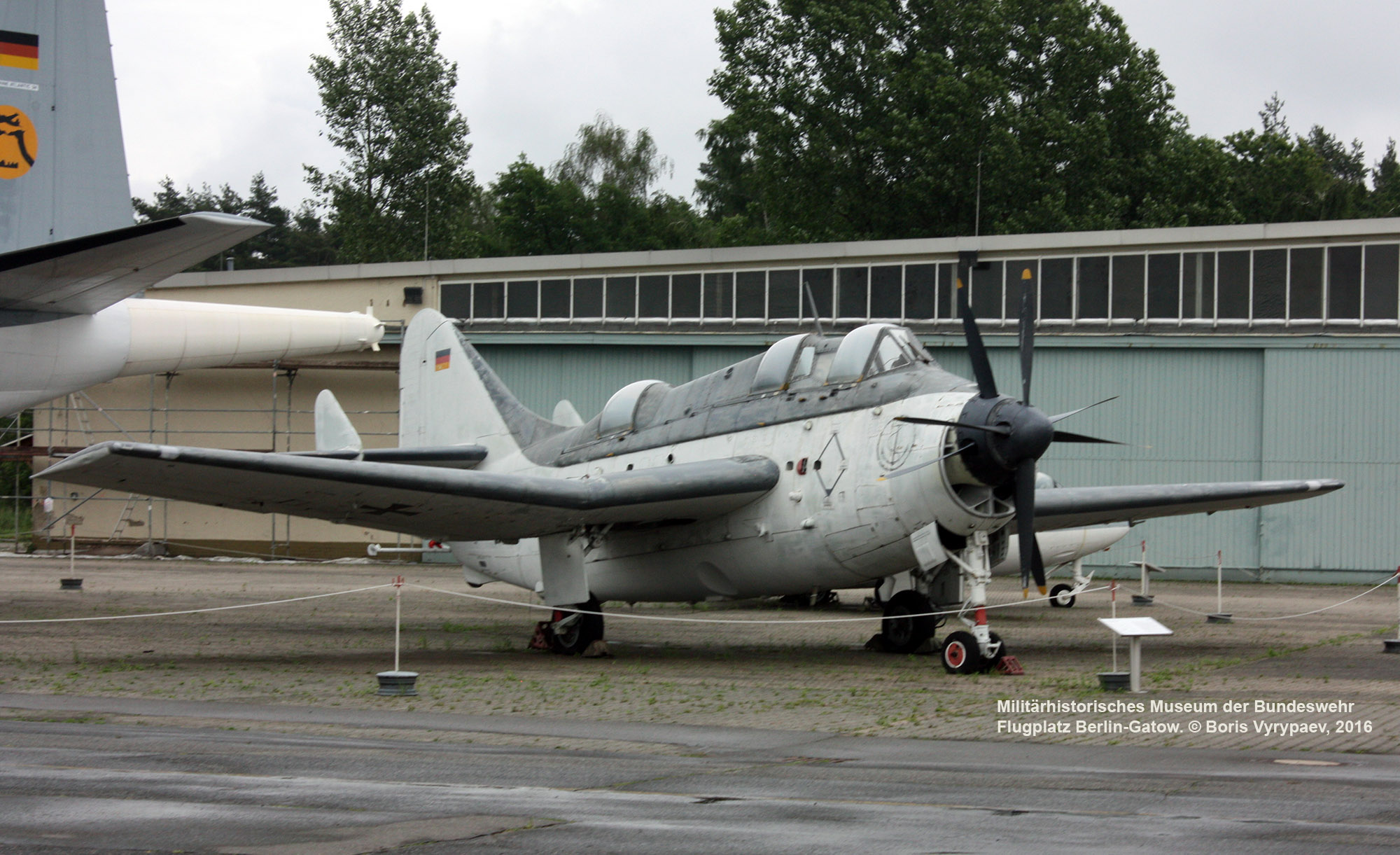 В этой части обзора представлен английский палубный противолодочный самолёт Fairey Gannet AS.4, находящийся в экспозиции на площадке перед ангаром №7.